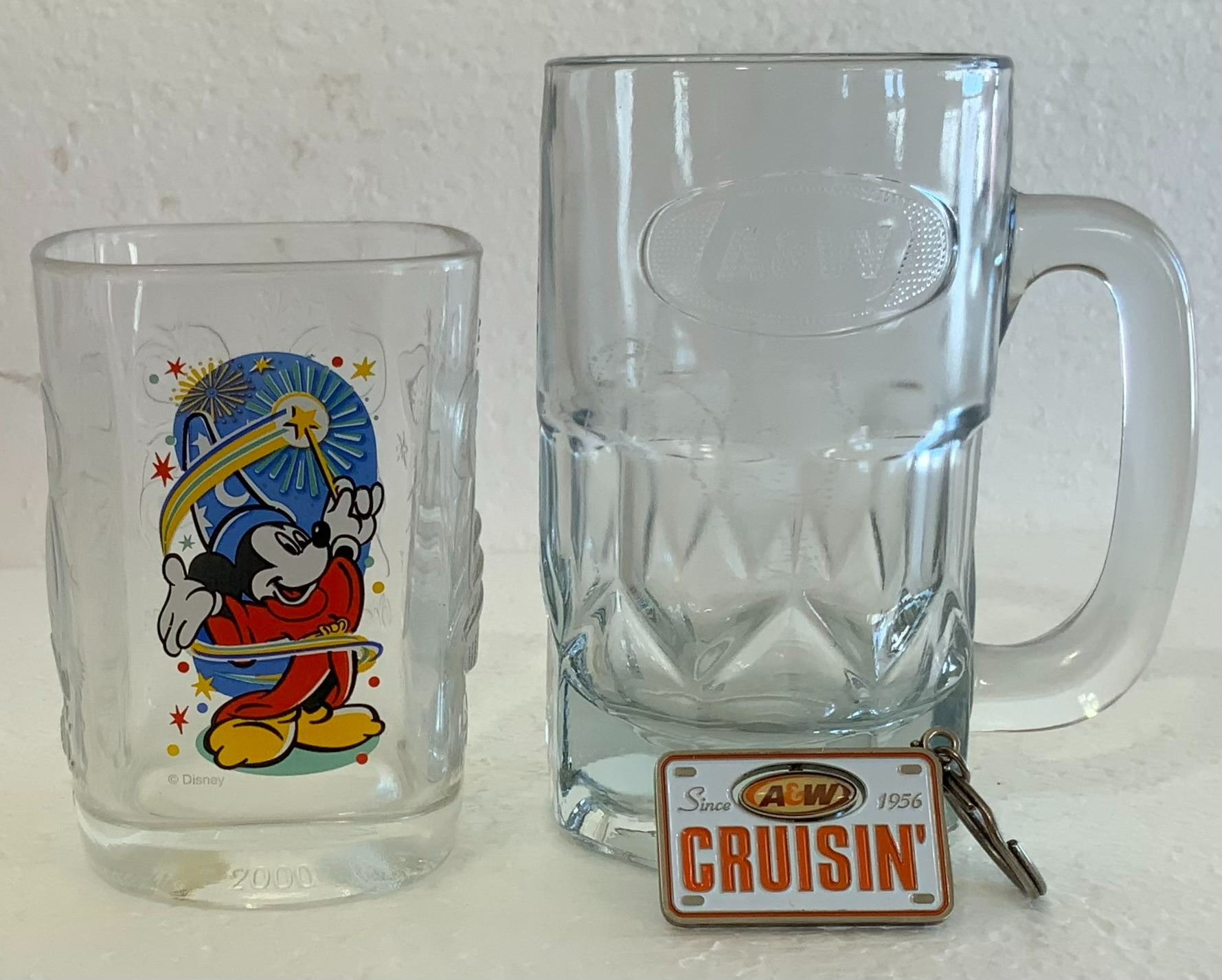 A&W Mug and Key Chain. Mickey Mouse Tumbler