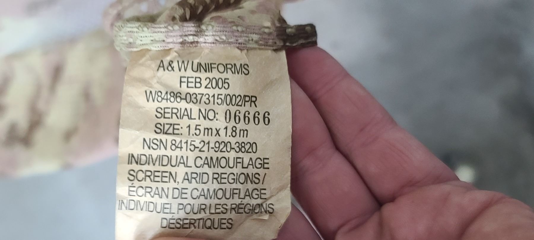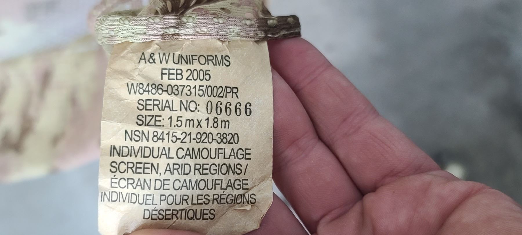 A&W UNIFORMS ARID REGIONS INDIVIDUAL CAMOUFLAGE 1.5 X1.8M