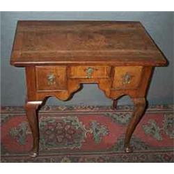 A WALNUT LOWBOY, EARLY 18th CENTURY, with cross and feather banded top, the central frieze drawer...