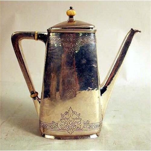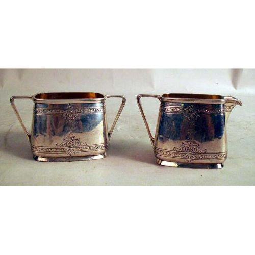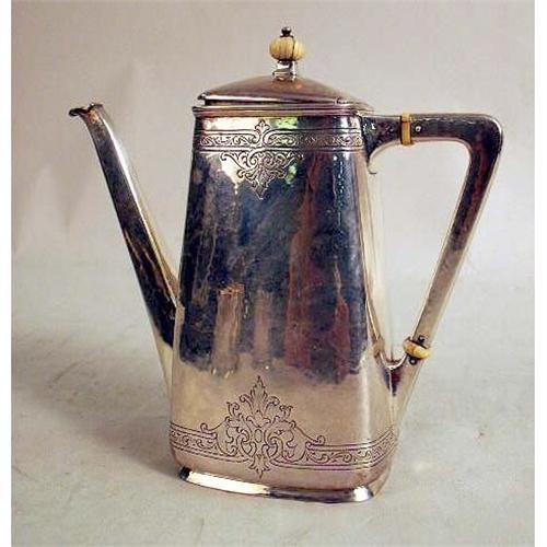 A WALTER LAWRENCE THREE-PIECE STERLING SILVER TEA SERVICE WITH MATCHING TRAY<BR><BR>Comprising a teapot, cream jug and open sugar bowl, and tray, weight apx. 32 T.O.