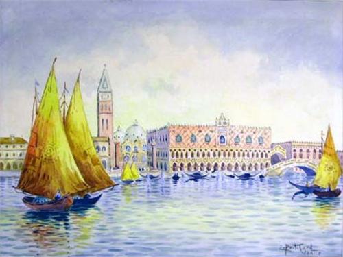 A WATERCOLOR, F. PRITCHARD; port scene of Venice, signed, lr, apx. 12"h x 16"w