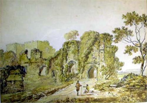 A WATERCOLOR, "GOODRICH CASTLE" BY JOHN LAPORTE; (John Laporte 1761-1839), signed, lr, 10 3/4"h x 14 3/4"w