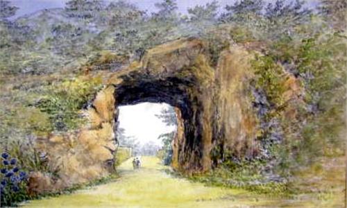 A WATERCOLOR OF A NATURAL BRIDGE; By Elizabeth Stiles Harrington, also may be known as Elizabeth Still de Pearsall Stanhope, Countess of Harrington, 5 1/2"h x 8 1/2"w
