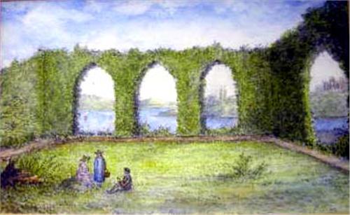 A WATERCOLOR OF AN ABBEY RUINS; By Elizabeth Stiles Harrington, also may be known as Elizabeth Still de Pearsall Stanhope, Countess of Harrington, signed, lr, E.S.H., 5 1/4"h x 8 1/4'w
