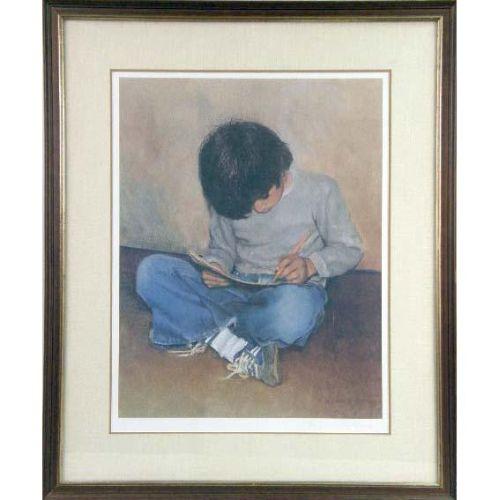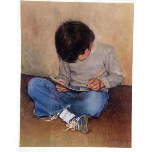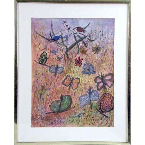 A WATERCOLOR OF BIRDS AND BUTTERFLIES<BR><BR>signed Elaine Love/1979. Together with a crayon on paper sketch of a young boy, singed "Marna Standoeffer". Birds 18 1/2" x 14 1/4".