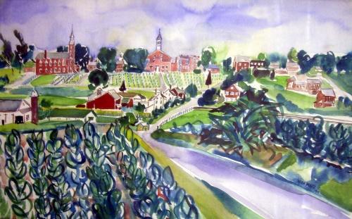A WATERCOLOR ON PAPER; Tobacco - New Holland, PA, signed l.r. Vera White '49. Verso with several old labels, one inscribed Pennsylvania Dutch/New Holland/$150, the other Philadelphia Water Color Club, Penna. Week, and giving artist information and price.