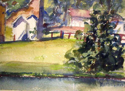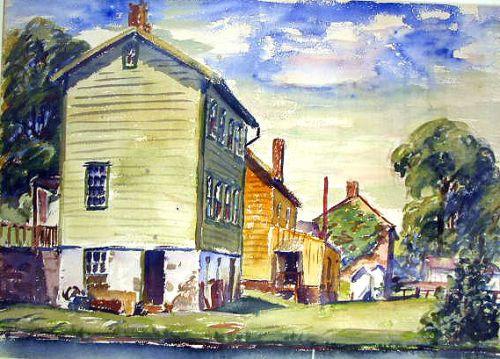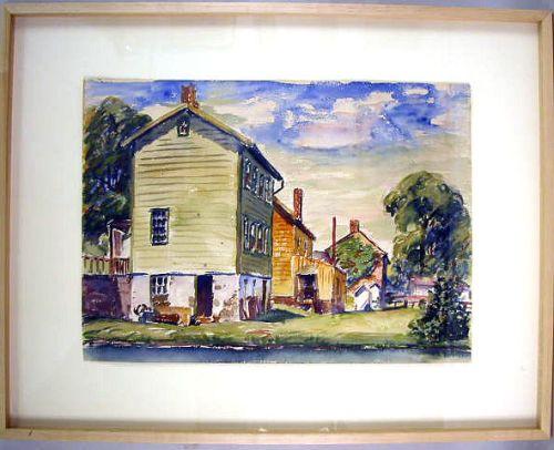 Titled "Houses at Lambertville, New Jersey", signed lr (Max) Kuehne (1880-1968) and dated 1917, from the estate of the artist. 14"h x 19 1/2"w.