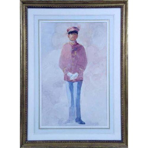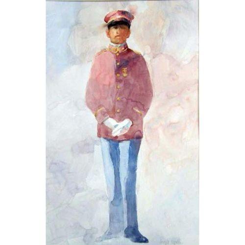 A WATERCOLOR ON PAPER<BR><BR>Of a soldier, signed l.r. "Joseph Cipella," 19"h x 12"w