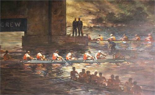 A WATERCOLOR TITLED THE RACES AT WORCESTER, MASS; "Below the Bridge" signed LR John Gable 82, original selling price $8400 (losses) 36"h x 24"w