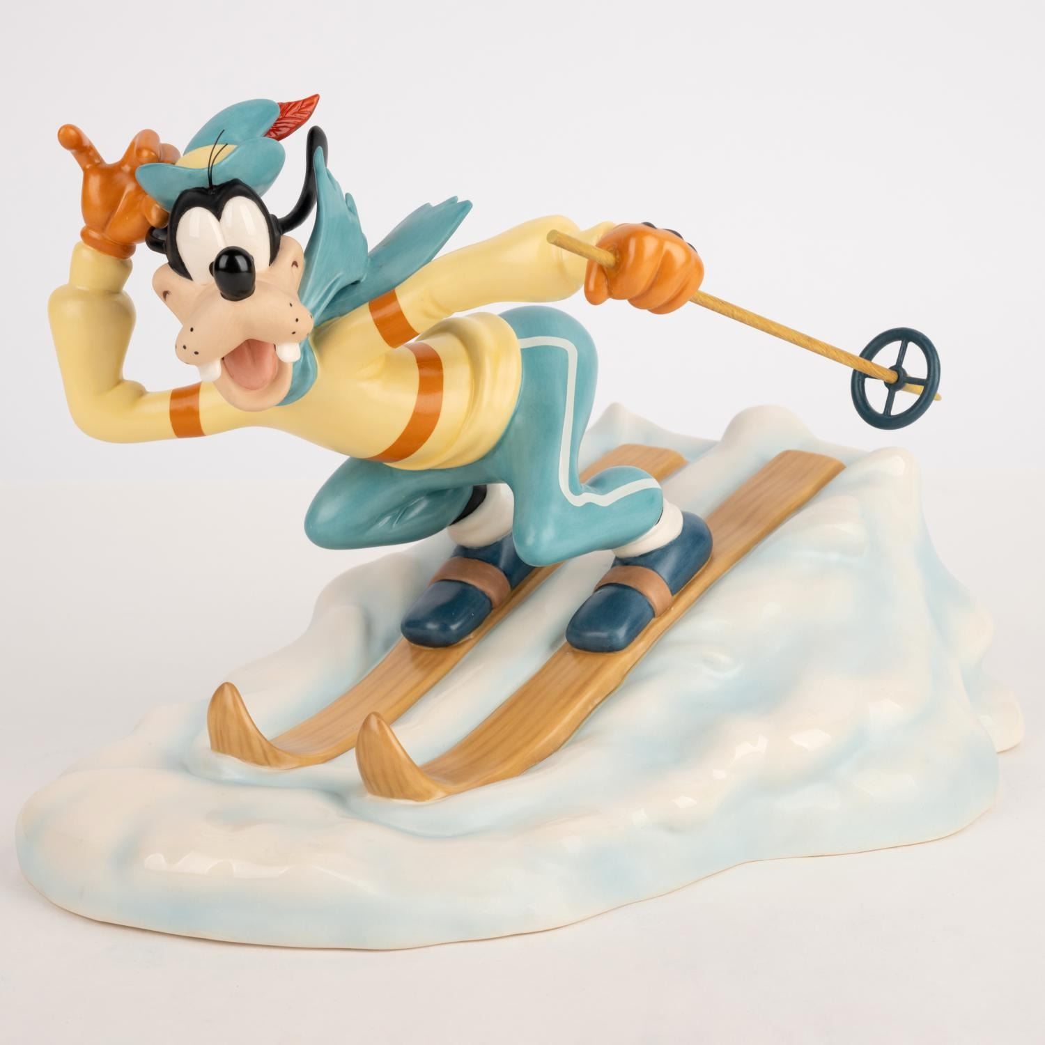 (WDCC, 2006) A Walt Disney Classics Collection “All Downhill From Here” figurine of Goofy, sculpted by Patrick Romandy-Simmons and released in a limited edition of 100. Measuring 11” x 8” and 7” tall, the figurine is in fine condition and comes with the original box and COA.