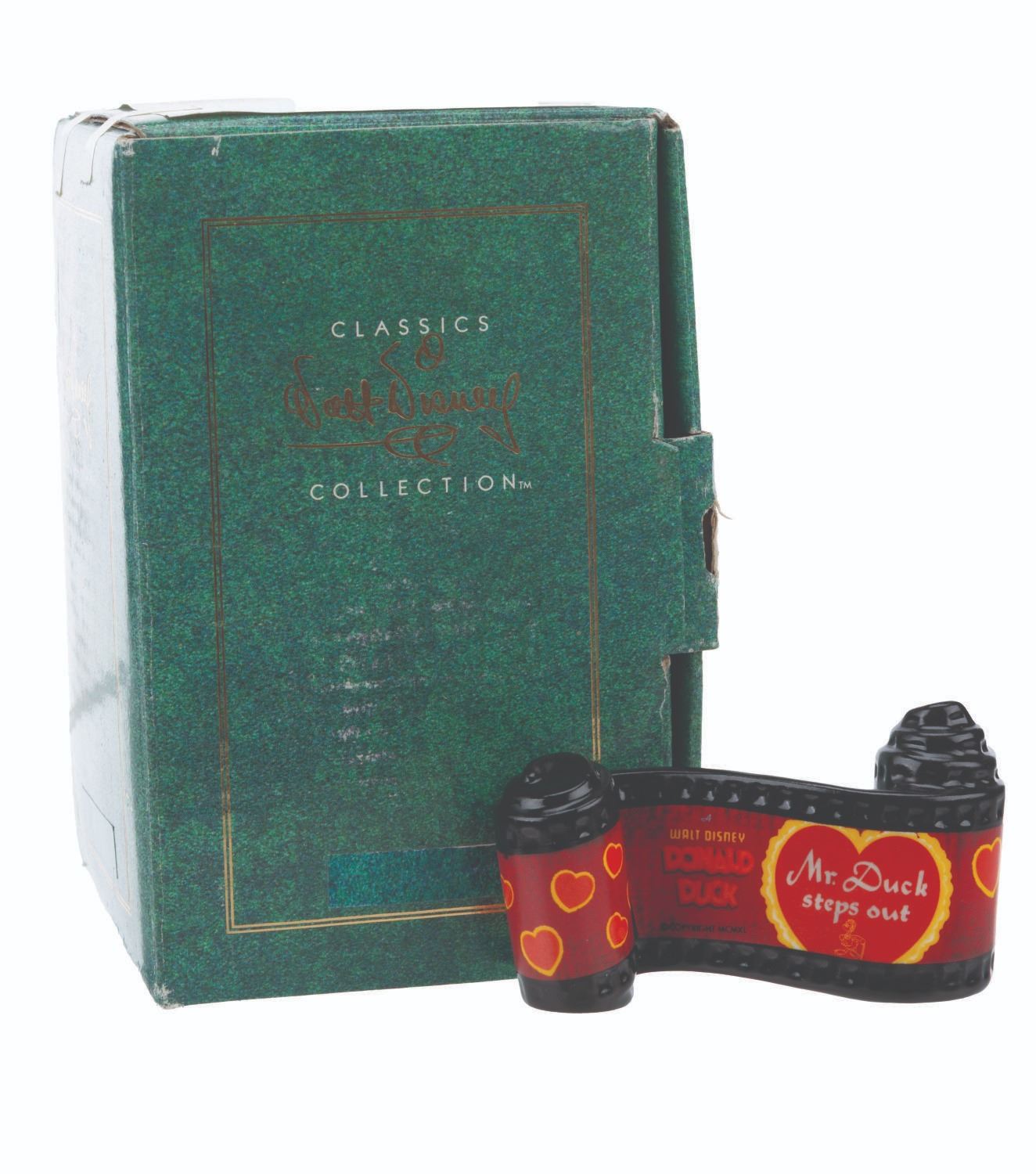 (WDCC, 1992-93) A "Mr. Duck Steps Out" opening title ceramic scroll from the Walt Disney Classics Collection. Measuring 2" x 3.25", the item is in fine condition.