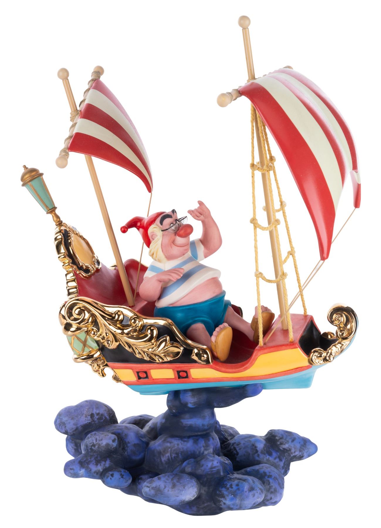 (WDCC, 2003) A Walt Disney Classics Collection “Mr. Smee’s Flight” figurine of Mr. Smee enjoying a ride on Peter Pan’s Flight. The figurine was sculpted by Patrick Romandy-Simmons and released exclusively to guests at the Walt Disney Art Classics Convention in a limited edition, numbered 199 of 500. Measuring 7” x 8.5” x 11.5” tall with its 12.75” x 14.25” x 14.5” tall original box, the sculpture is in fine condition.