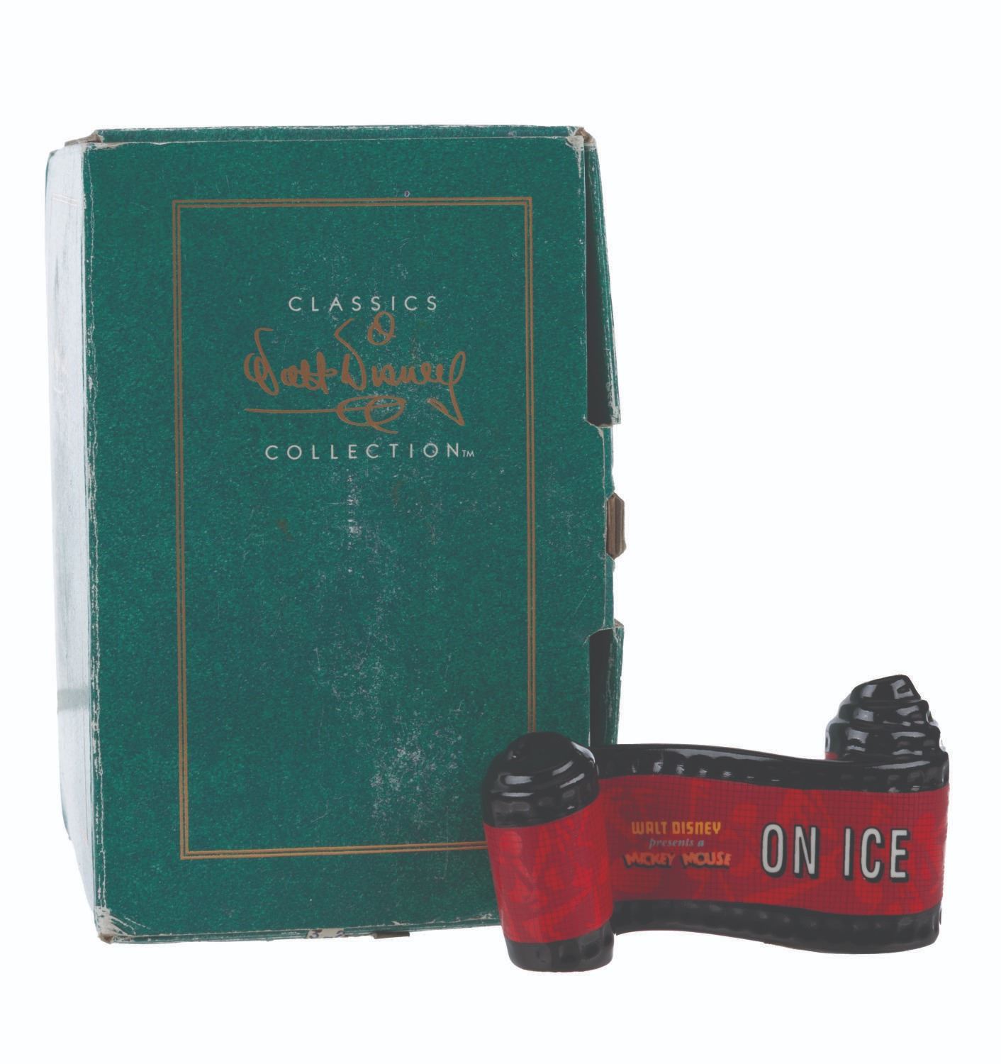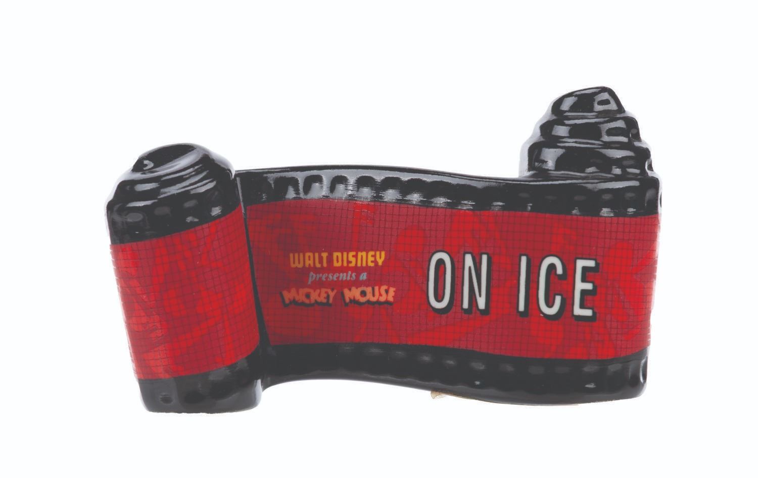 (WDCC, 1990s-2000) A Walt Disney Classics Collection ceramic opening title scroll for the Mickey Mouse short "On Ice." Measuring 2" x 3.25", the item is in fine condition.
