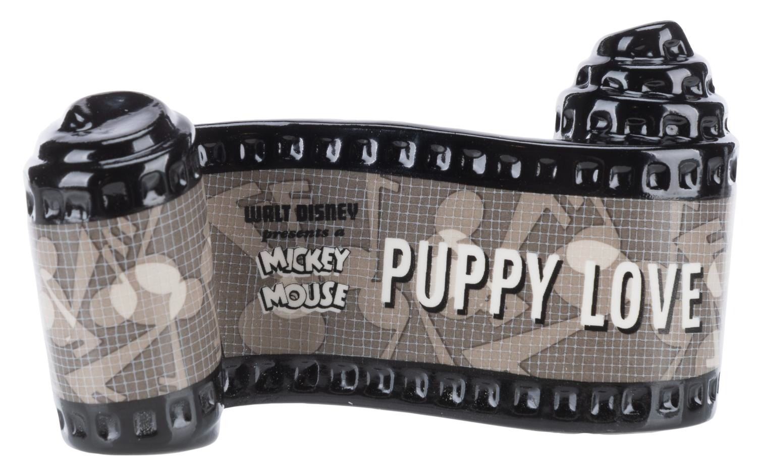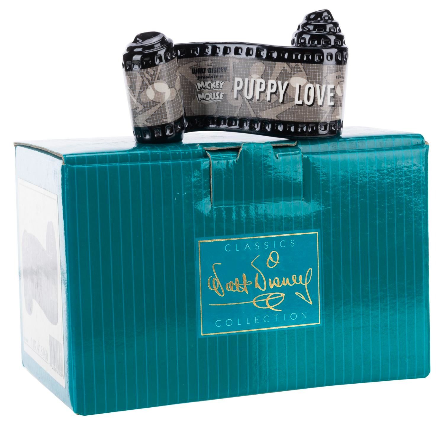 (WDCC, 1998) A"Puppy Love" opening title ceramic scroll from the Walt Disney Classics Collection. The scroll reads"Walt Disney Presents Mickey Mouse Puppy Love." Measuring 2" x 3.25", the ceramic is in fine condition.