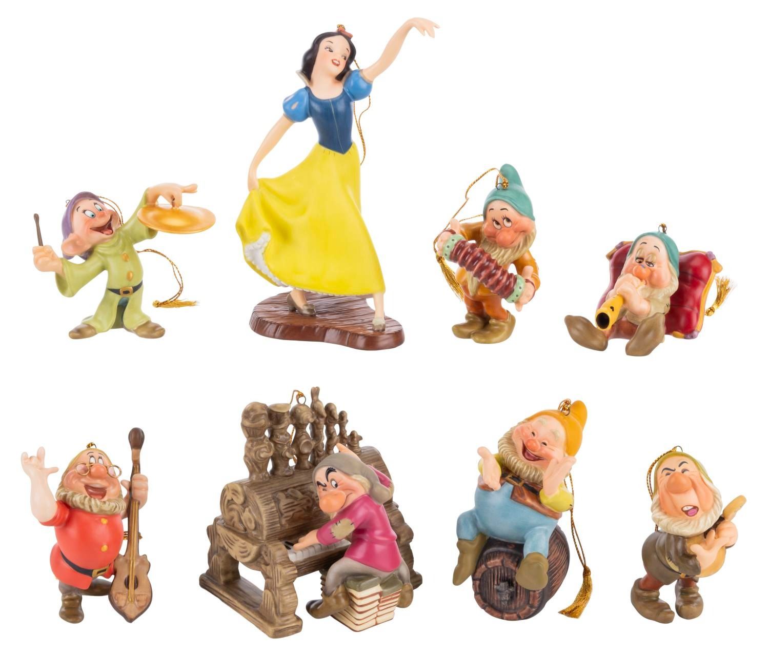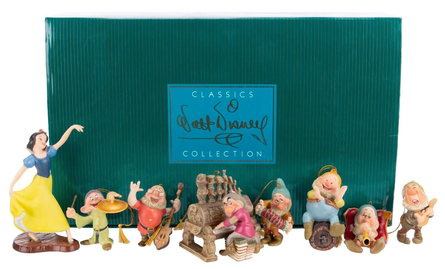 (Disney, 1999) A Walt Disney Classics Collection “Snow White and the Seven Dwarfs” porcelain ornament set. Released in a limited edition, the set is numbered 2091/5000. Ranging in size from 1.5” x 1.75” x 2.75” tall to 3” x 2.75” x 5” tall with their original 10” x 16” x 5” tall box, the ornaments are in fine condition.