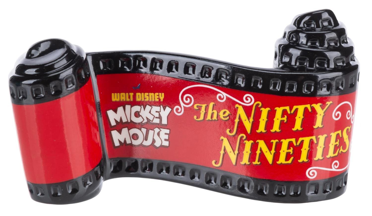 (WDCC, 2002) A Walt Disney Classics Collection ceramic opening title scroll for the Mickey Mouse short "The Nifty Nineties.” Measuring 2" x 3.25", the item is in fine condition with the original box.