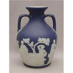 A WEDGWOOD BLUE JASPER DIP VASE, Portland shape, classical subjects, height 21cm 80-100
