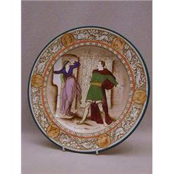 A WEDGWOOD CREAMWARE PLATE, c.1910, colour transfer design 'Rebecca Repelling the Templar' and two Petrus Regout transfer printed plates 'Zeepballen' (3) £20-30