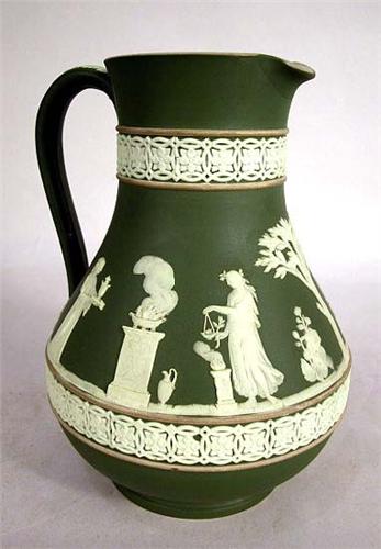 A WEDGWOOD, ENGLAND GREEN JASPERWARE PITCHER