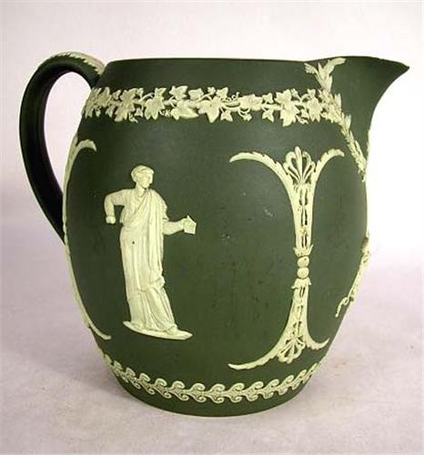 A WEDGWOOD, ENGLAND GREEN JASPERWARE PITCHER