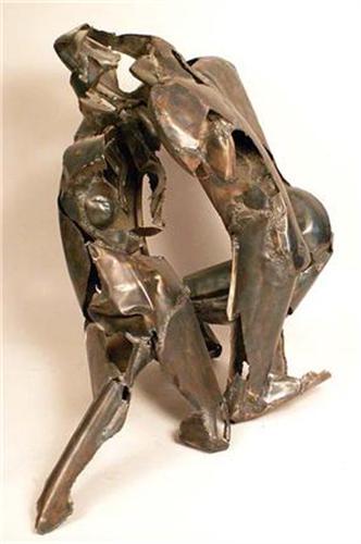 Of a man and woman embracing, by Joe Clark (American, 20th c.). Approximately 42"h x 44"w. Together with newspaper articles about the artist from the early 1960s.