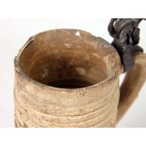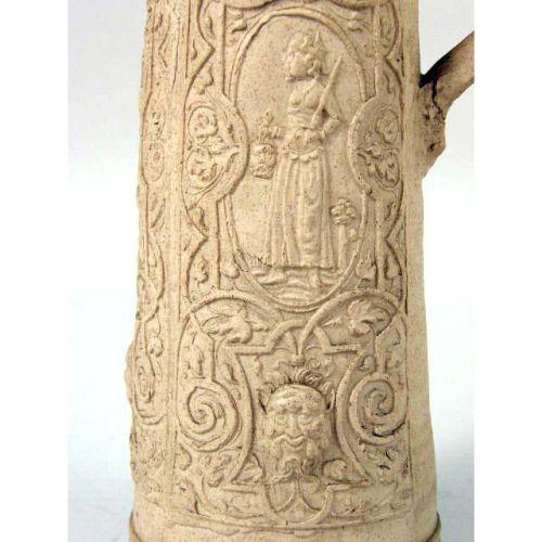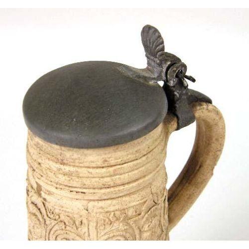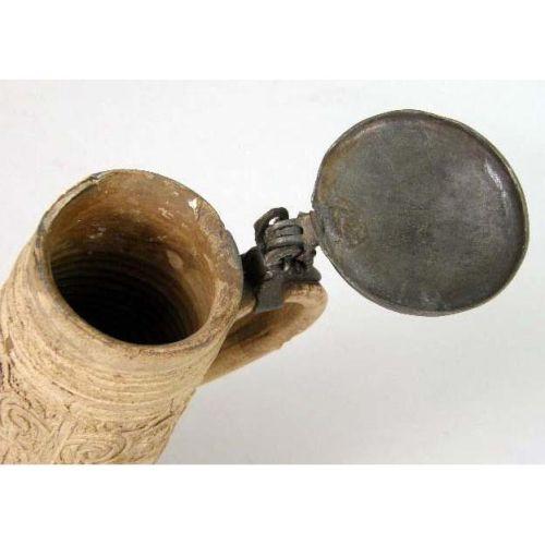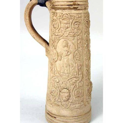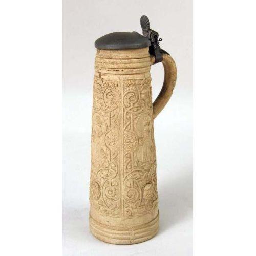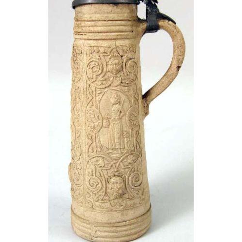 A WESTERWALD SALT-GLAZED STONEWARE TANKARD<BR><BR>German, repairs to lid and rim, 10-1/4"h