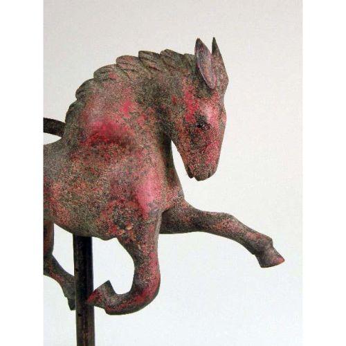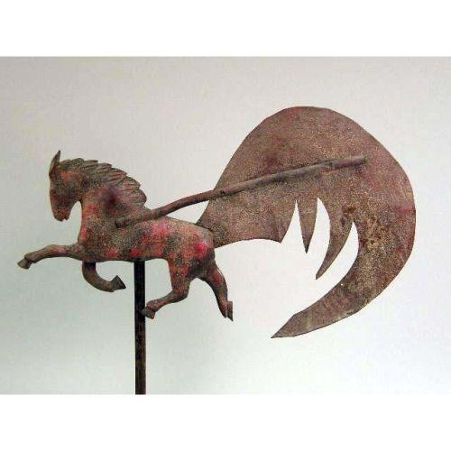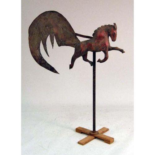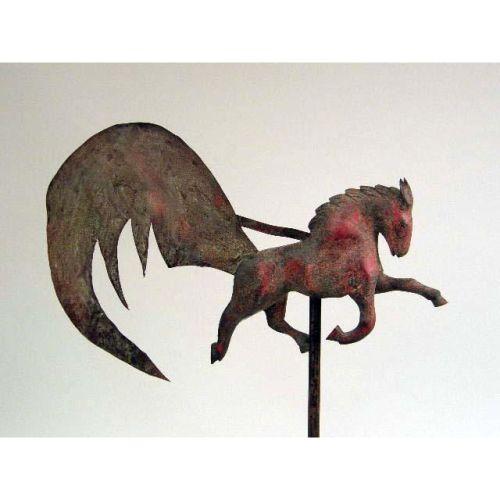 A WHIMSICAL CARVED WOOD AND PATINATED METAL "FLYING HORSE" WEATHERVANE<BR><BR>Overall: 4`h x 38"w