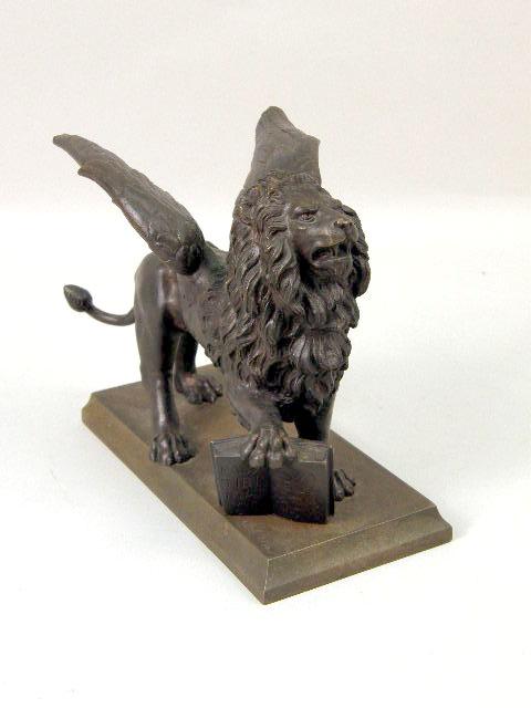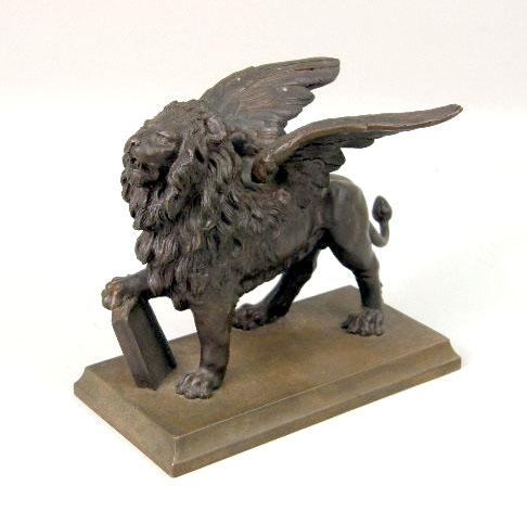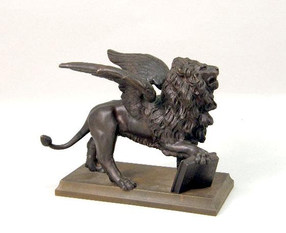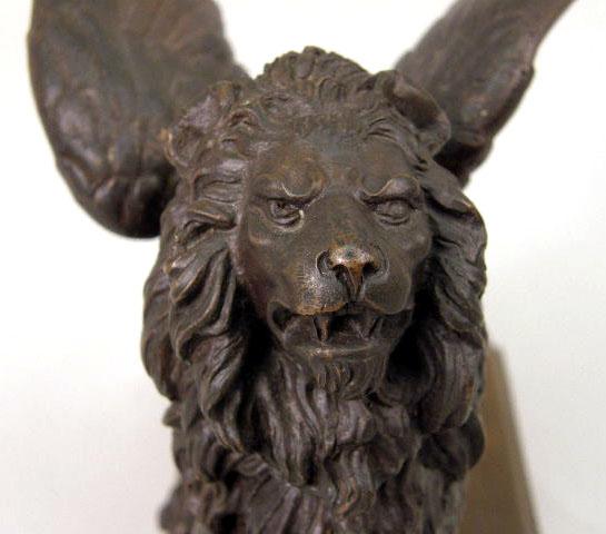 A WHITE METAL SCULPTURE OF A GRYPHON