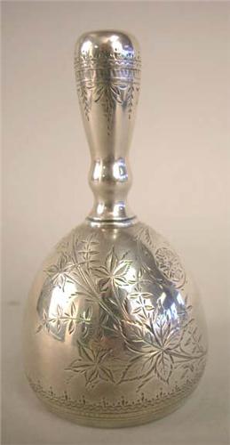 A WHITING DIVISION OF GORHAM STERLING SILVER BELL; All-over engraved stylized foliate design, marked 27, 5"h, apx. 5 T.O.