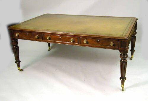 English, each face fitted with three short drawers. Some wear. 30 1/2"h x 6`l x 44 1/2"w.