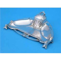 A WMF plated ink stand, of elliptical form and decorated throughout with stylised Art Nouveau motifs, stamped 7.5ins £100-150