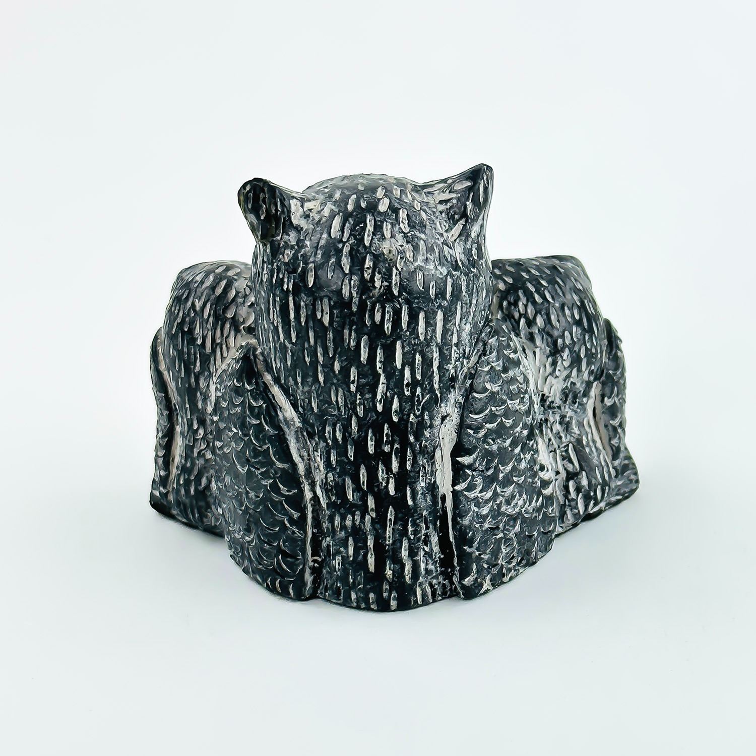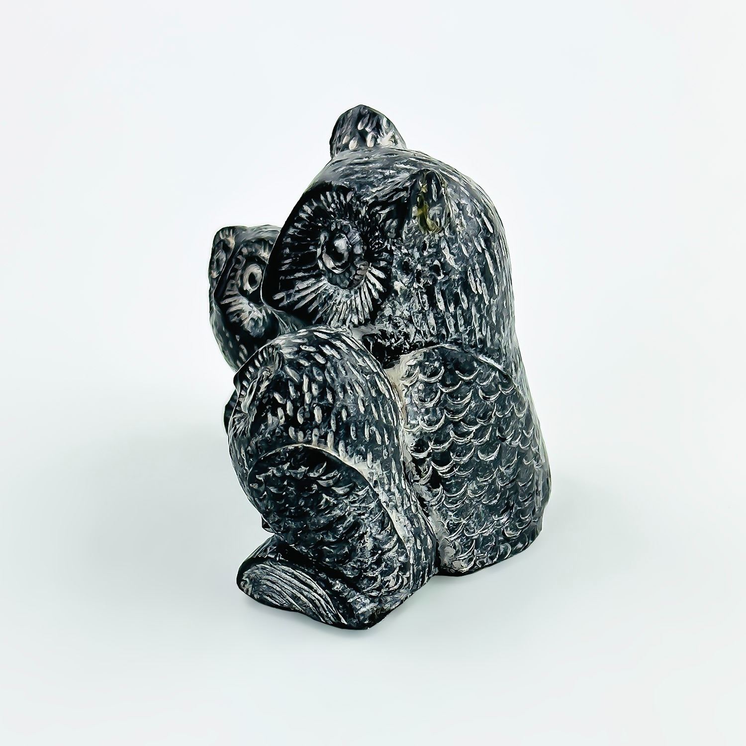 #8294 - THE WOLF SCULPTURES - HAND MADE IN CANADA. OWLS SCULPTURE MEASURES: 3.125” (8 CM) WIDE BY 1.75” (4.5 CM) DEEP AND SITS 2.25” (6 CM) TALL