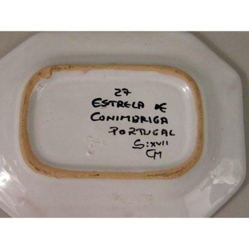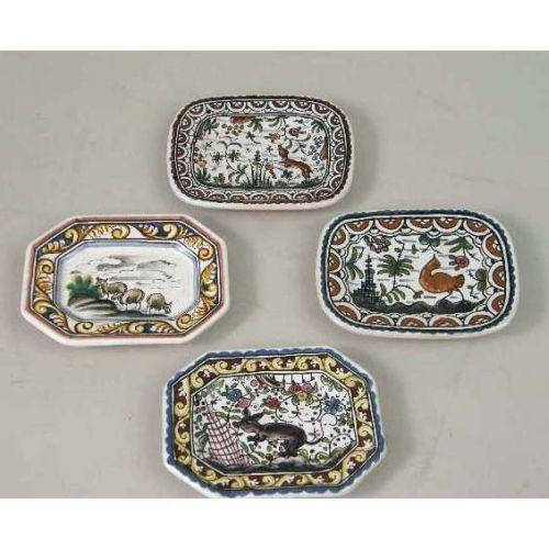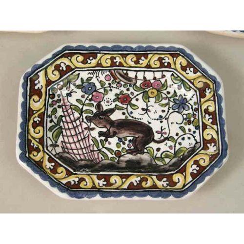 A WOOD AND PATINATED METAL CIGAR GUILLOTINE<BR><BR>Together with four polychrome decorated ceramic dishes, one broken, pieces present, losses. 10-1/2"h