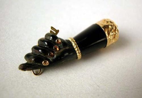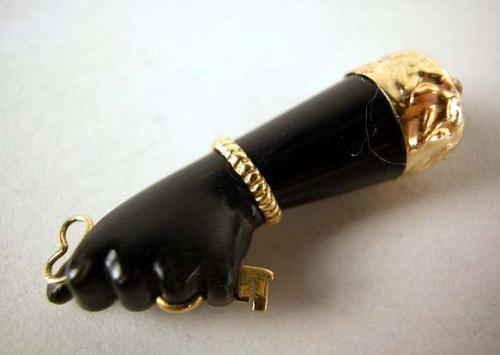 A WOOD HAND WITH KEY With 14K yellow gold trim
