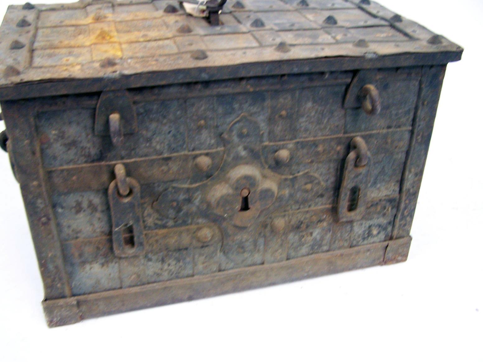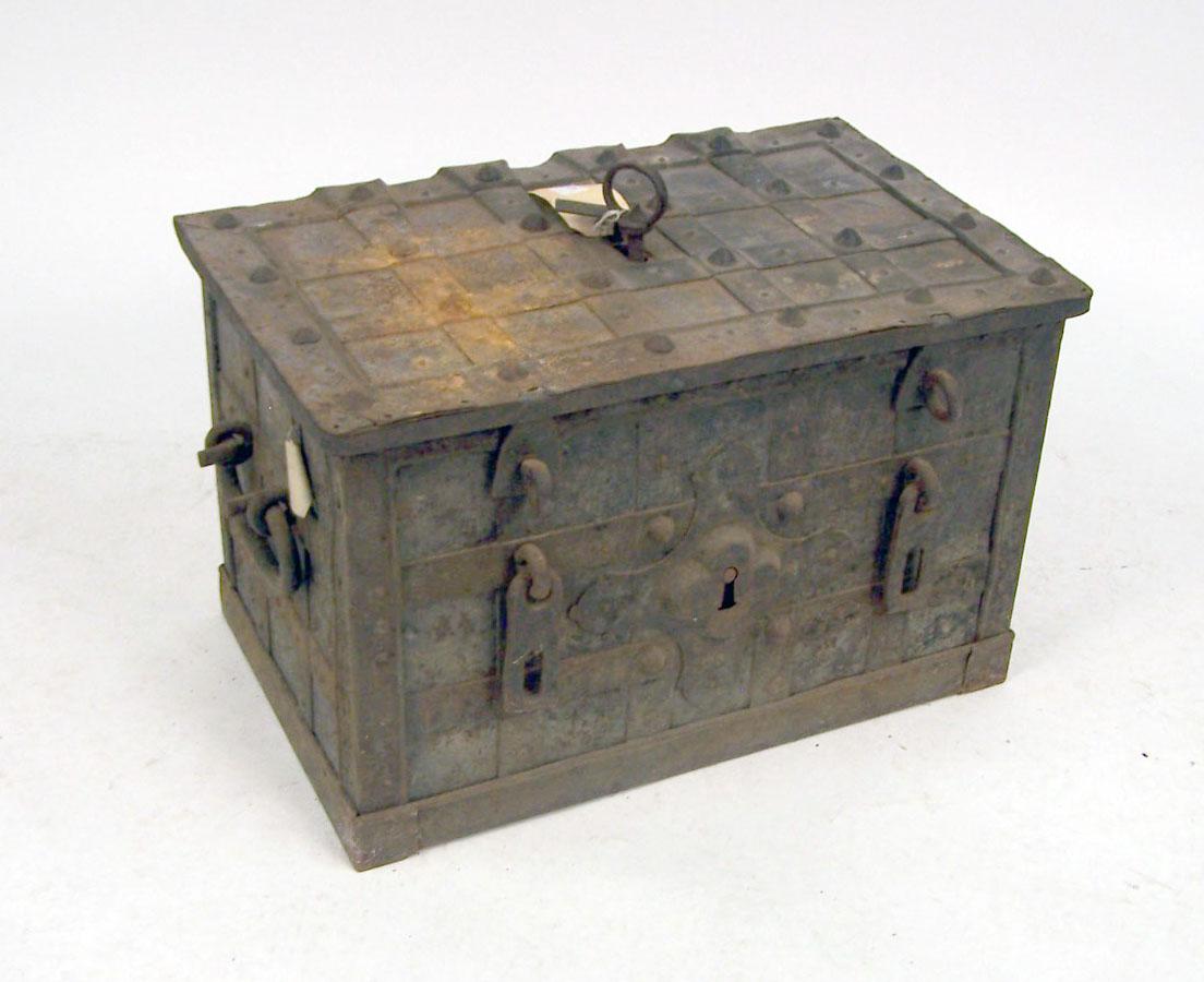 Continental, the lid opening to a locking till, and with retractable lid support, the sides fitted with carrying handles. 17"h x 27"w x 17"d