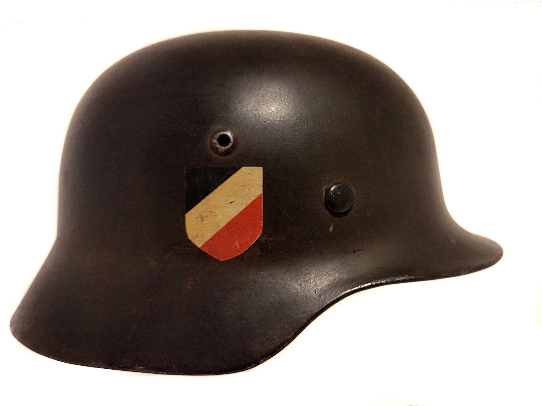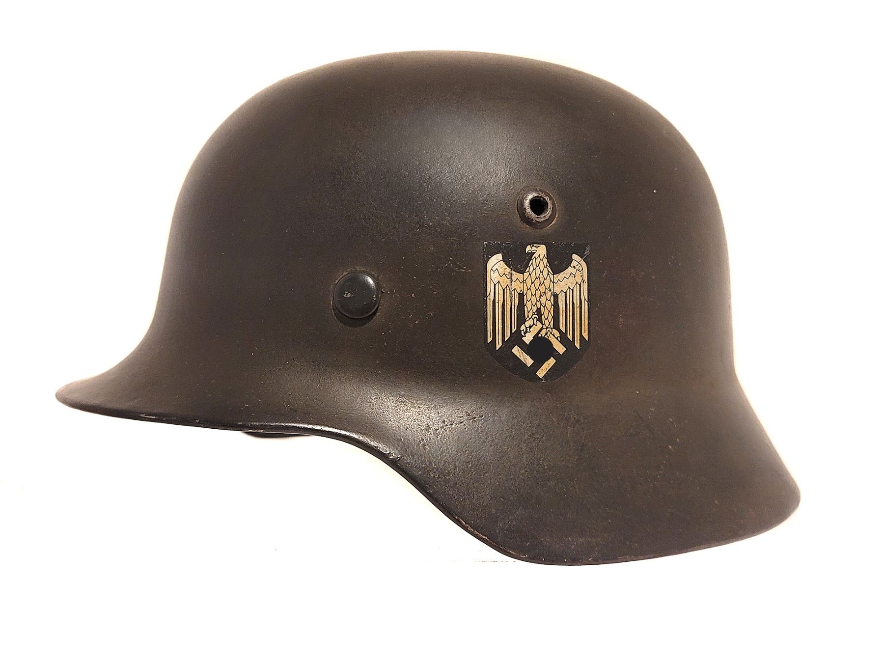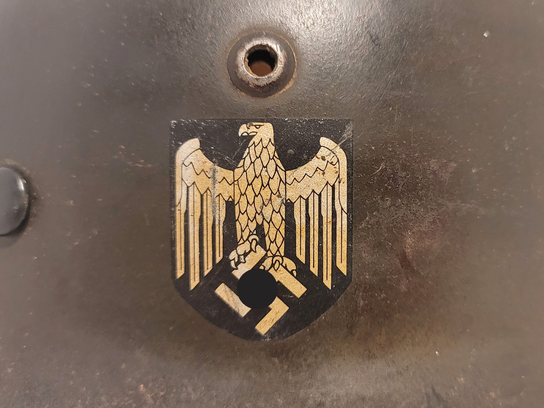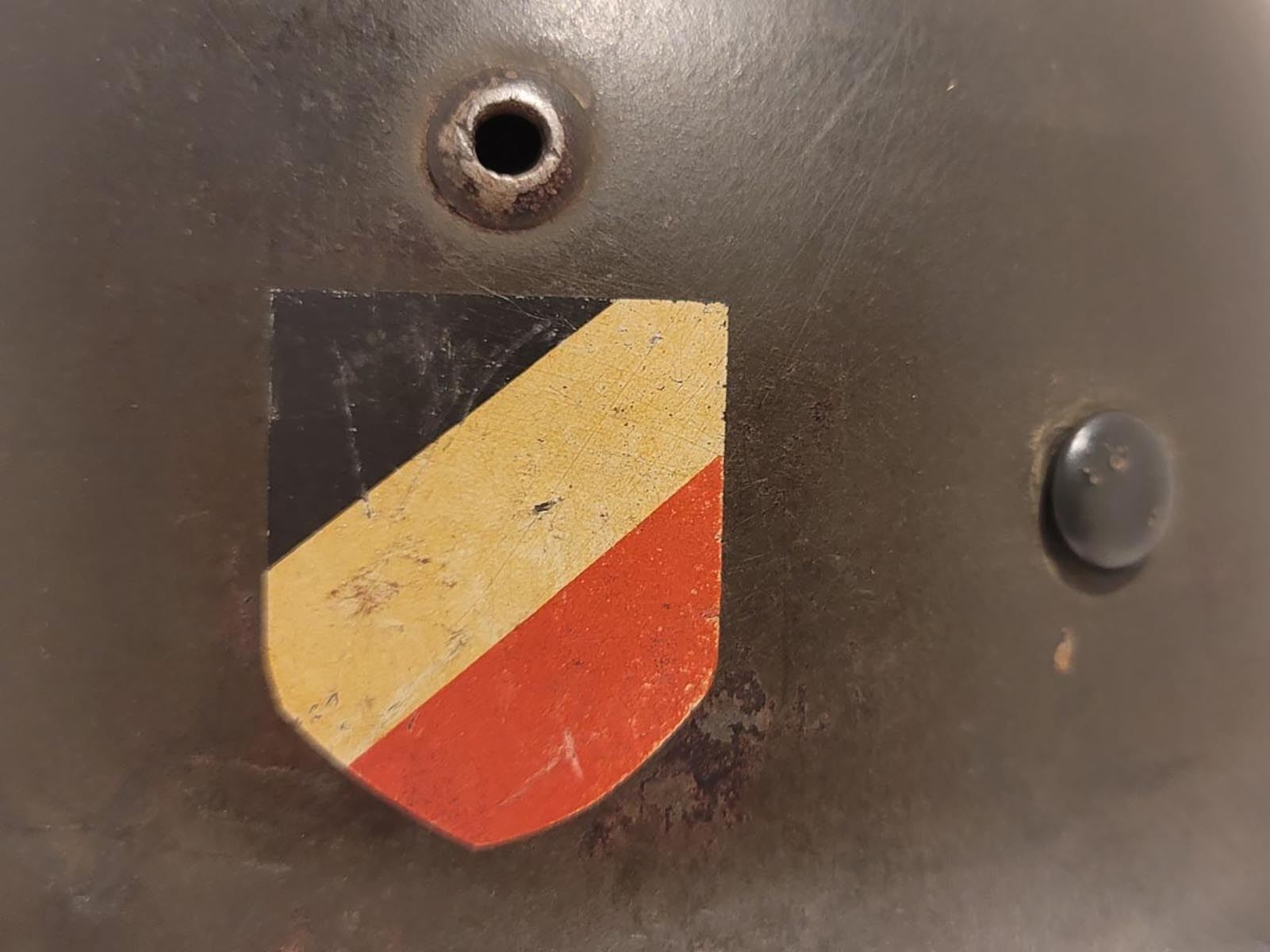 Heer M35 Double Decal Helmet. The shell is stamped C682. Original liner stamped size: 55.