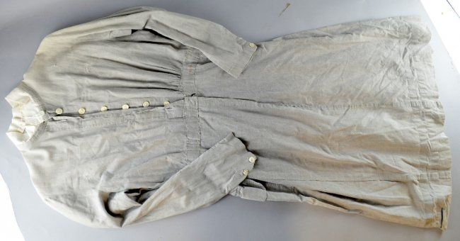 A WWI period nurses uniform, light fawn cotton with white collar and mother of pearl buttons