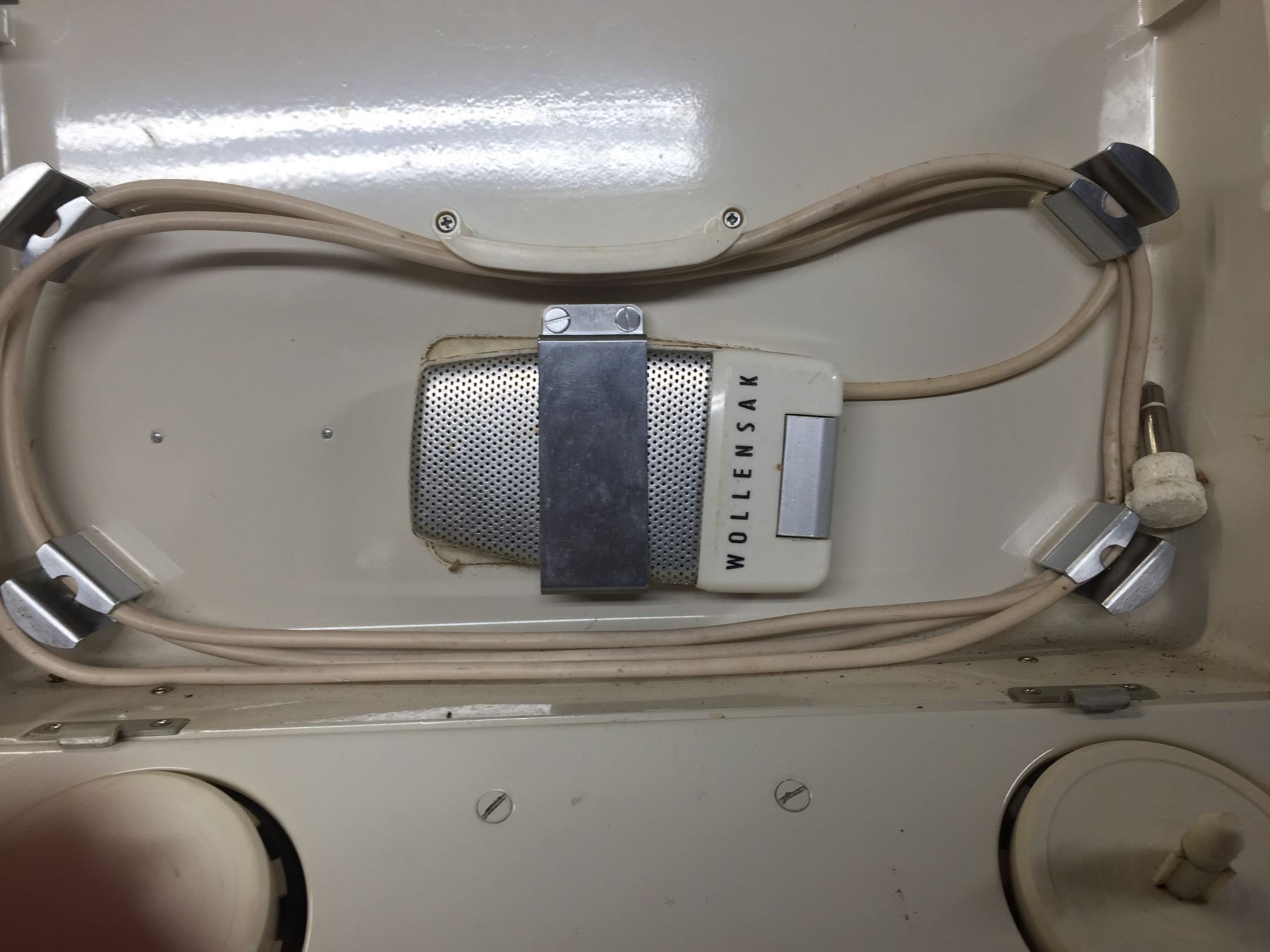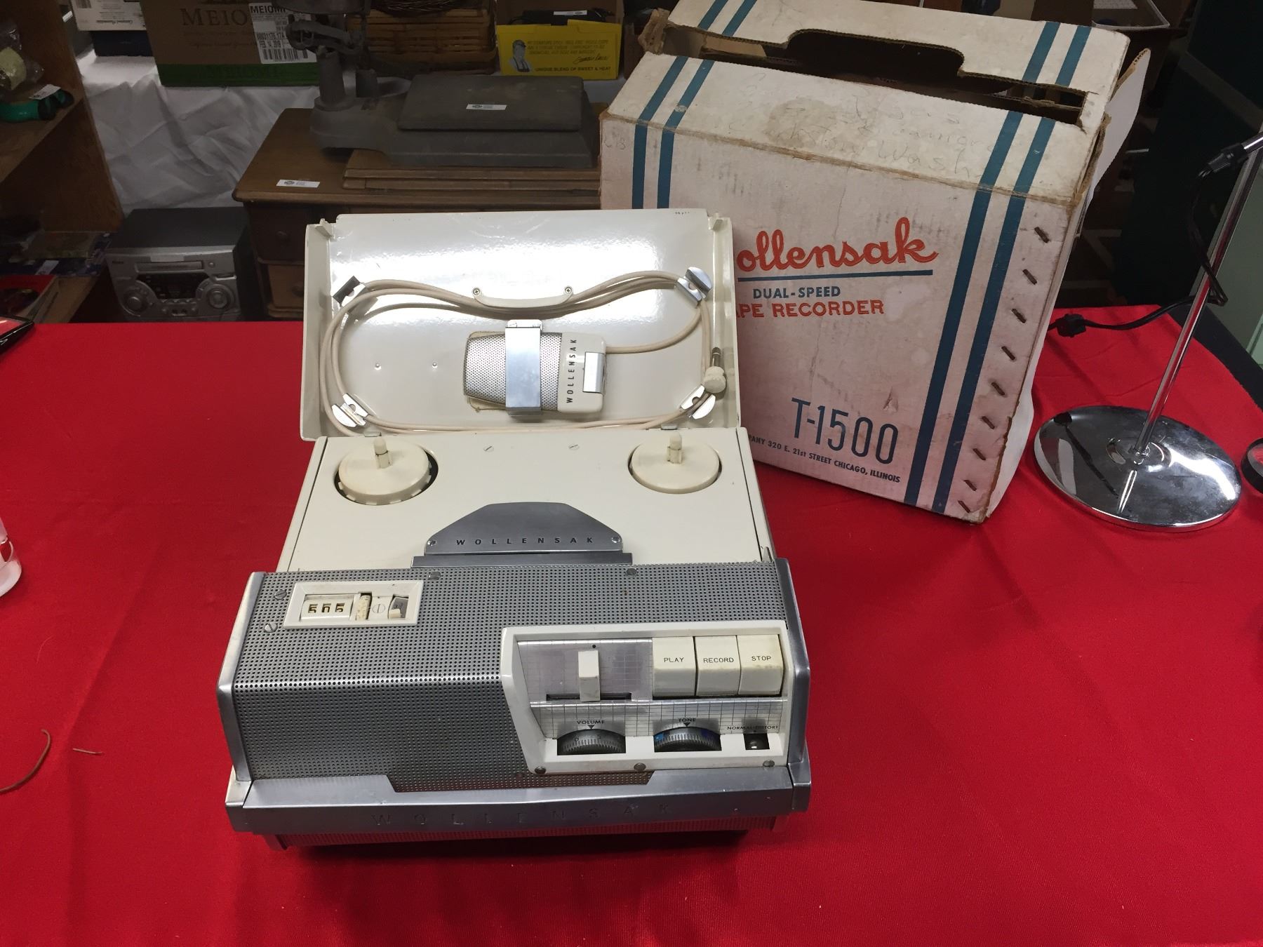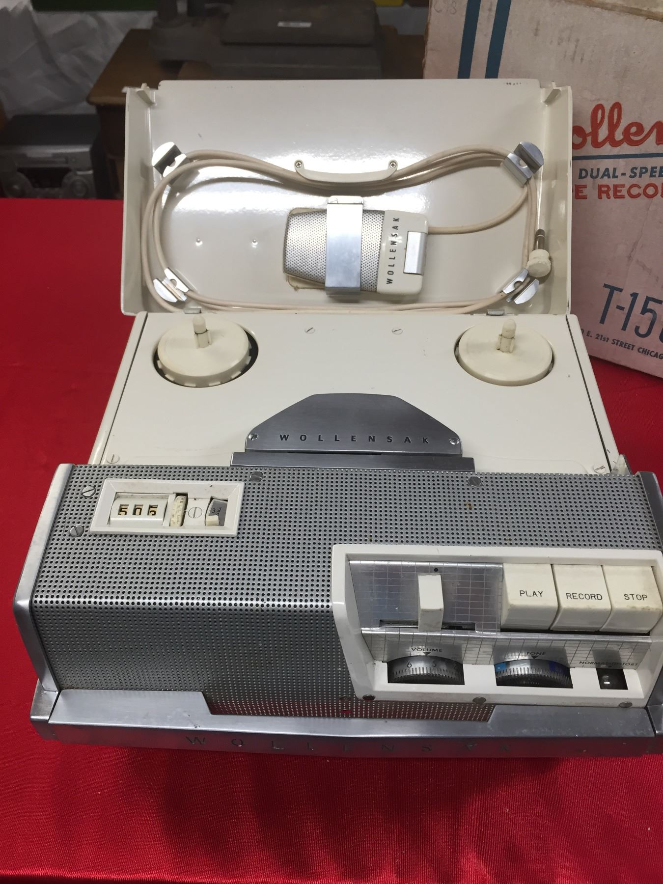 A Wallensak Reel to Reel Tape Recorder with Microphone and a Repair Reciept from 1962. Still has Original Carbox Box it Came With