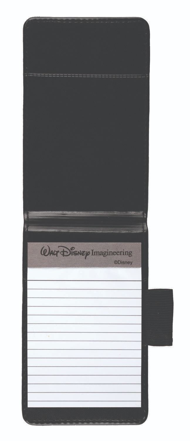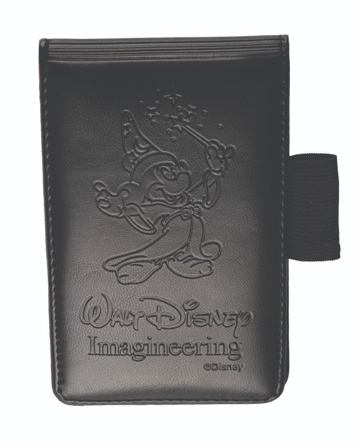 (WDI, 1997) A Walt Disney Imagineering employee leather notebook embossed with Mickey Mouse as he appeared in "The Sorcerer's Apprentice" segment of "Fantasia." Measuring 3.5" x 5.5", the notebook is in very good condition, with light scratching and creasing from use.