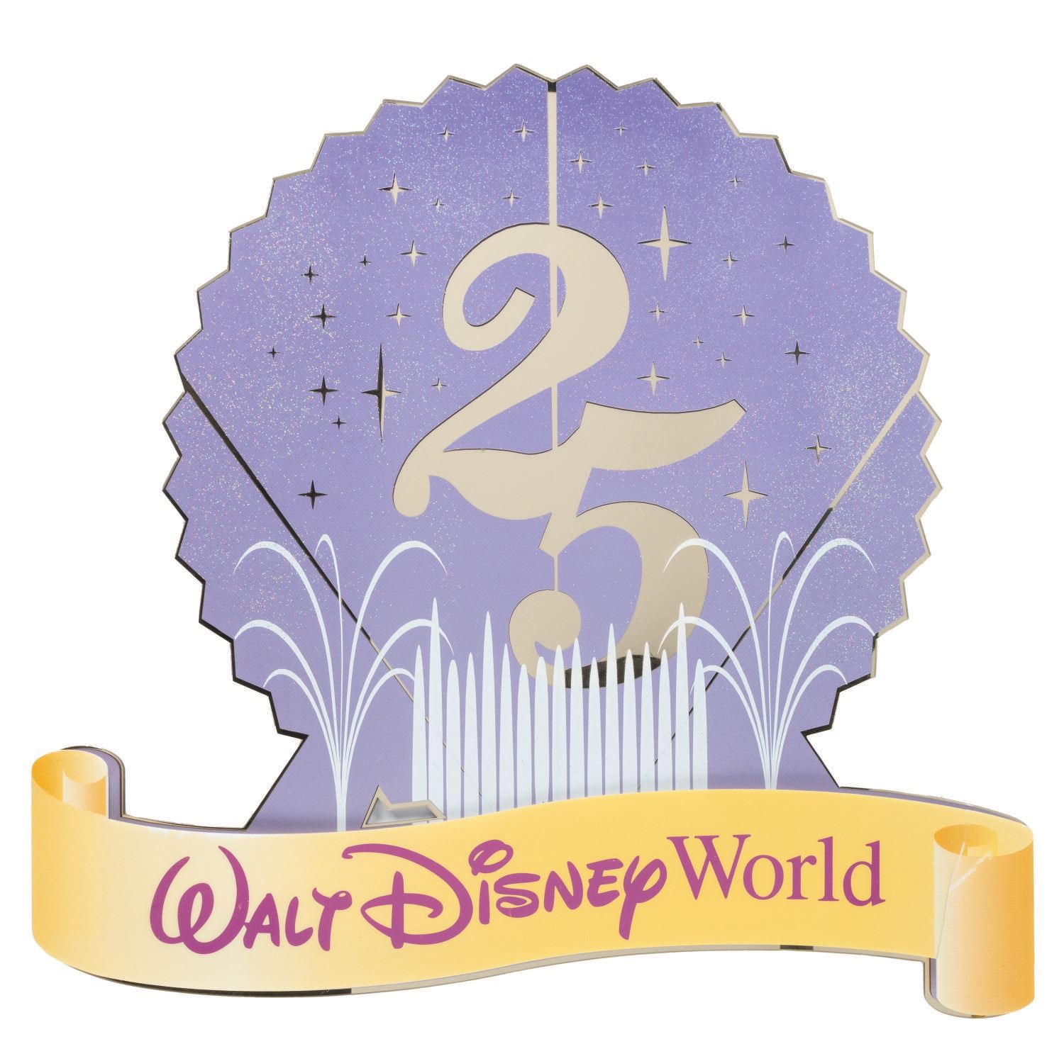 (Walt Disney World, 1996-1998) A sign created in celebration of Walt Disney World's 25th anniversary. Constructed of mirror-backed acrylic, this large reflective die-cut sign features screen printed design elements and the lettering, "25 Years." Measuring 24.25"x25.25", the sign is in good condition with scuffing, wear throughout from park display, handling, and age.