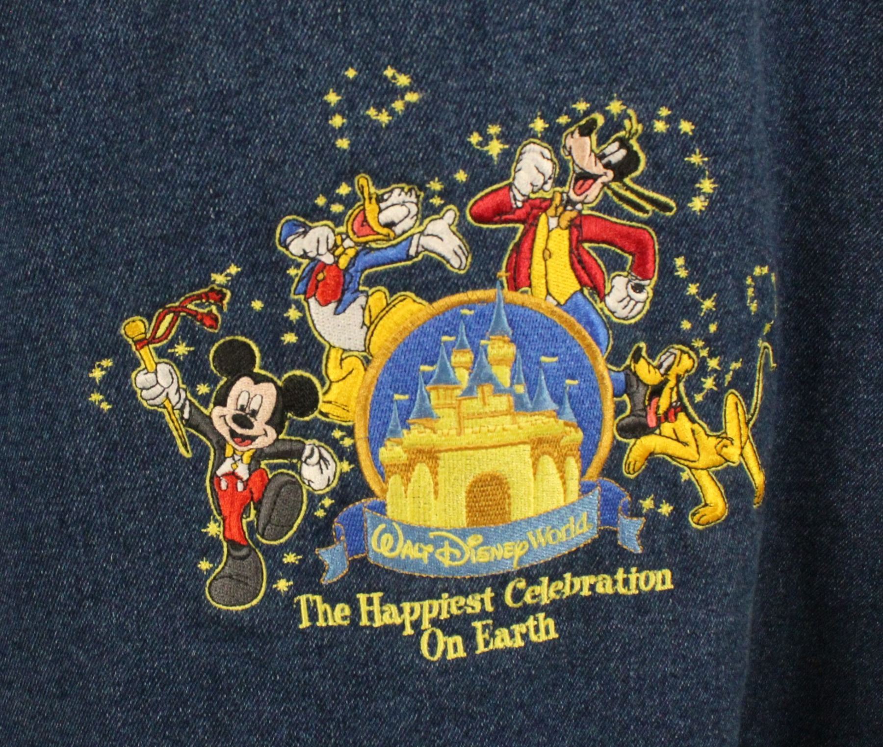 (Walt Disney World, 2005) A "Walt Disney World The Happiest Celebration on Earth" denim jacket. Measuring a size extra large, this souvenir jacket is in very good condition with a very small stain.