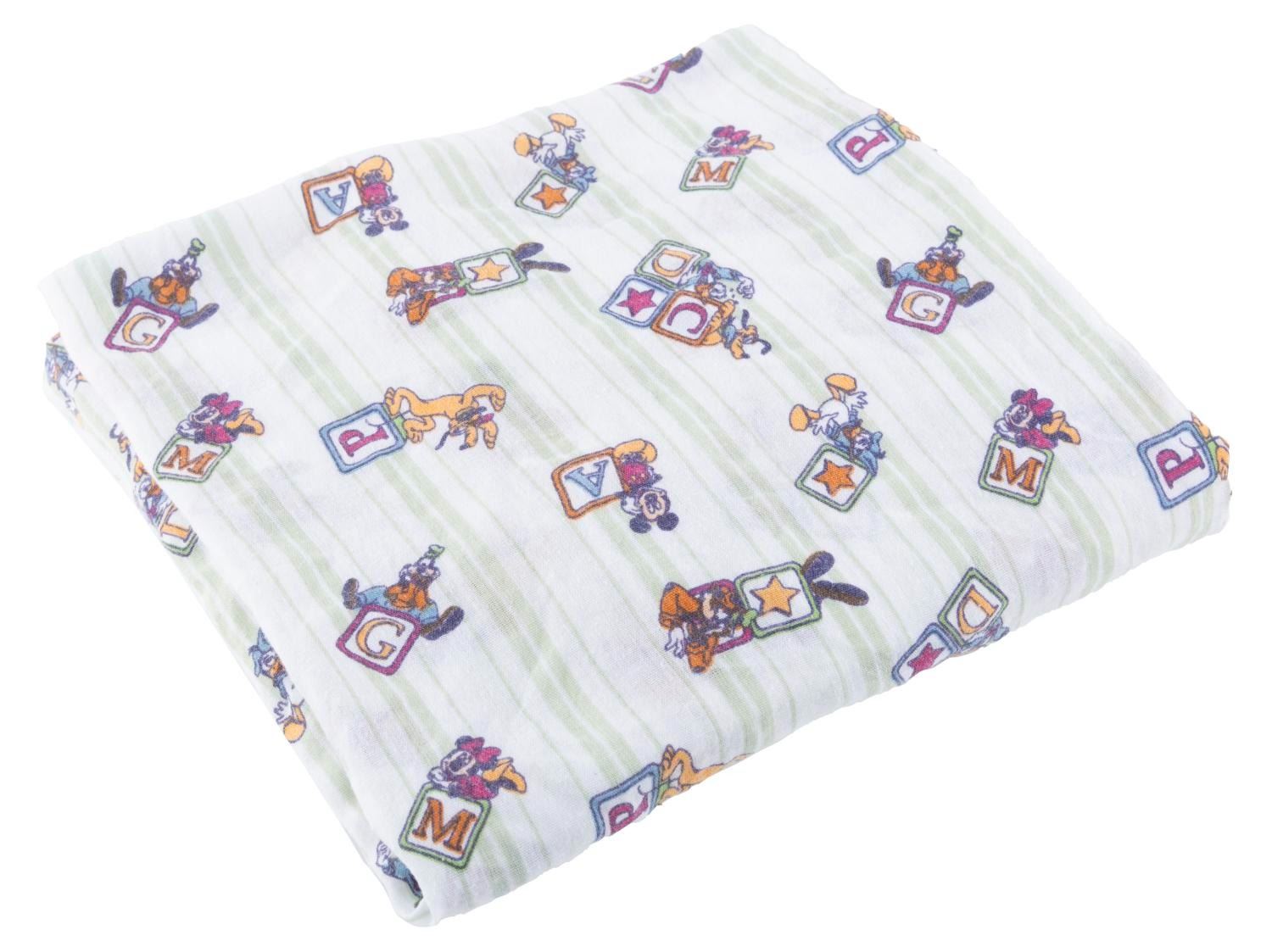 (Walt Disney World, 1970s-90s) A Fab Five and ABC block pattern crib sheet, used at changing stations across the Resort. Measuring 28" x 43", the sheet is in very good Park-used condition with light wear.