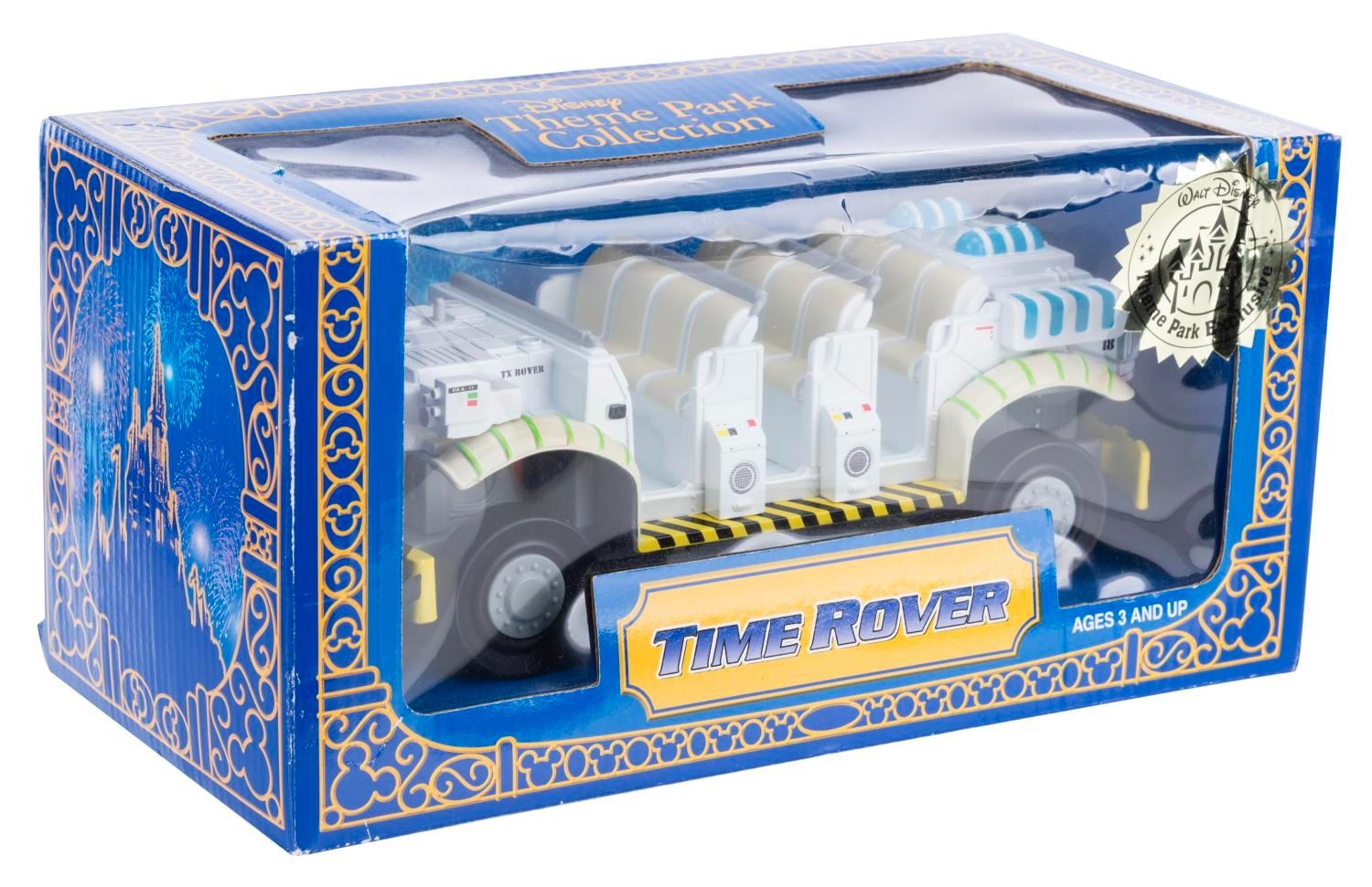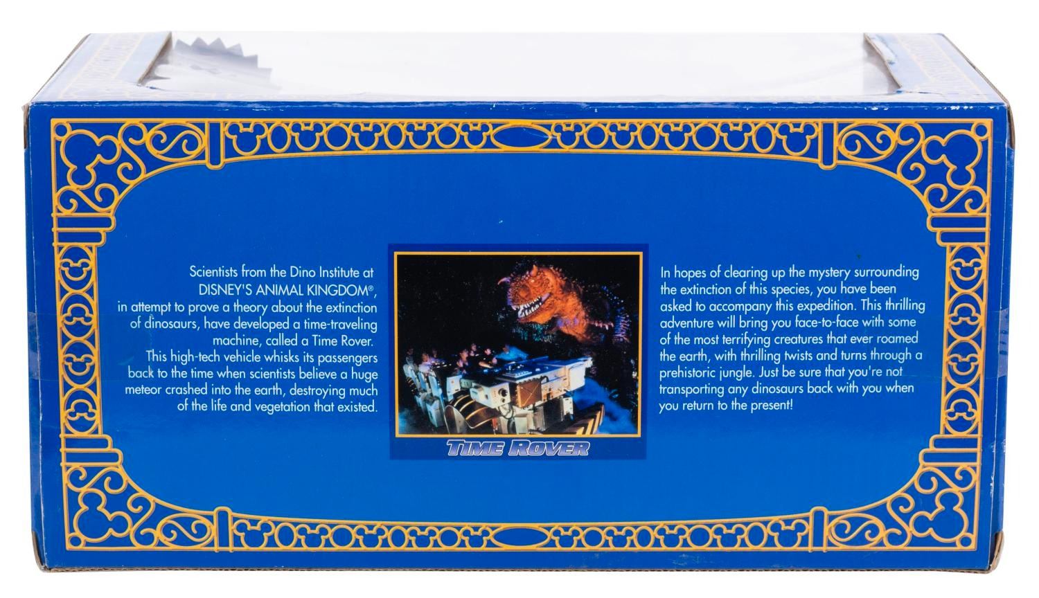 (Walt Disney World, 2000s) A Disney Theme Park Collection Time Rover attraction vehicle toy from Dinosaur at Disney’s Animal Kingdom. In its original packaging measuring 10.25” x 5” x 5.25” tall, the unopened toy is in fine condition, while the packaging is in good condition with scuffs and wear.