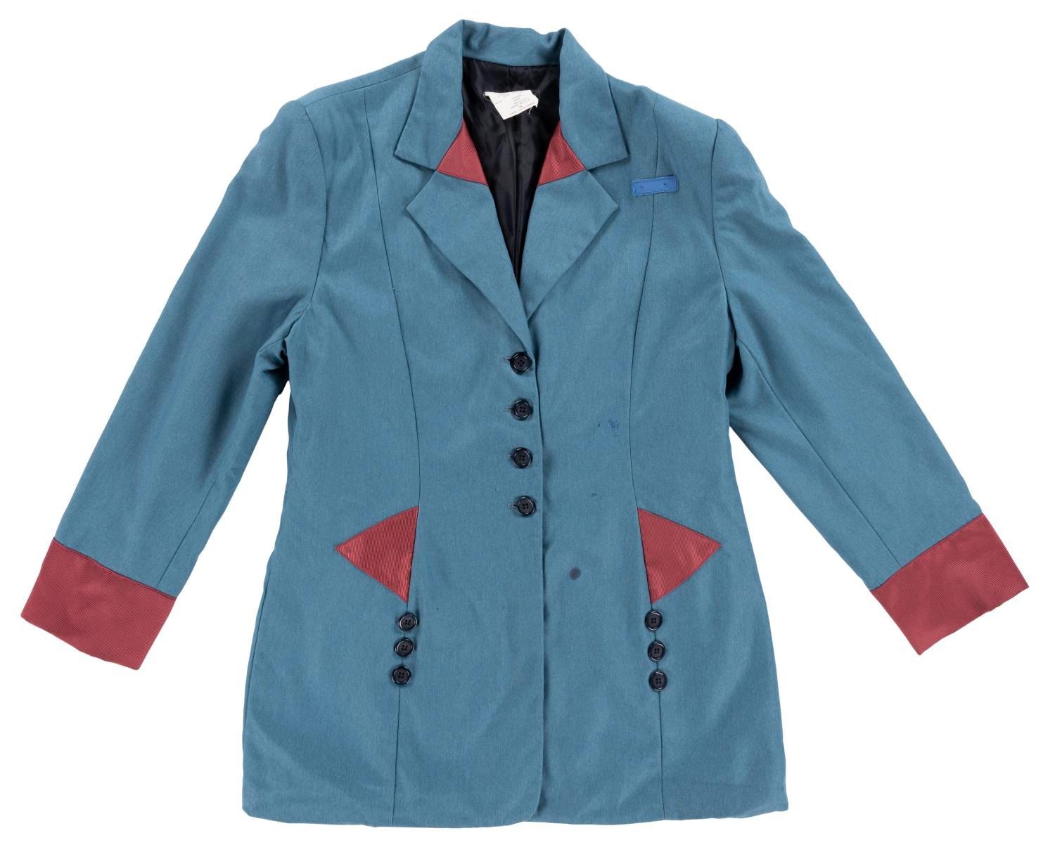(Disney Parks, 1990s-2000s) A female uniform coat from a Disney Parks Cast Member costume. Labeled a size Female 14-R, the jacket is in good condition with light stains throughout, and retains the original Disney tag.