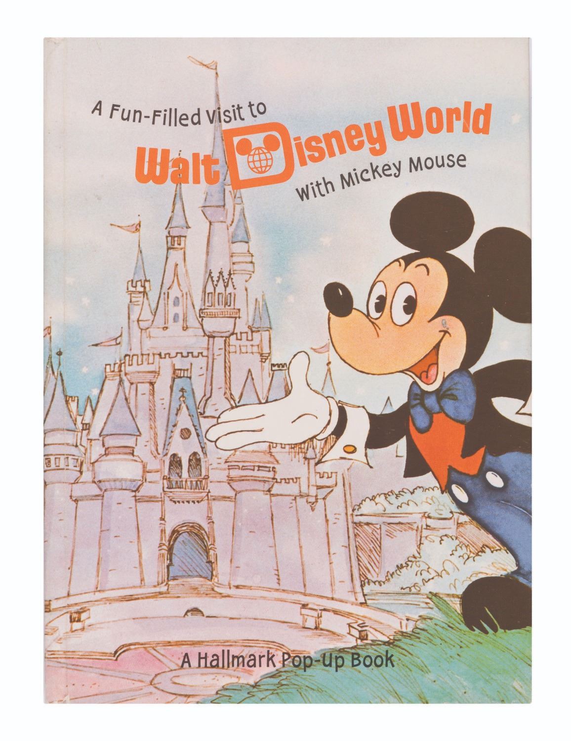 (Hallmark, 1972) A pop-up book titled “A Fun-Filled Visit to Walt Disney World with Mickey Mouse.” Published by Hallmark, the book takes readers on a journey through Park attractions such as The Haunted Mansion, Jungle Cruise, It’s a Small World, and more. Measuring 6.75” x 9.25”, the book is in very good condition with light cover scratches and wear from use and age.