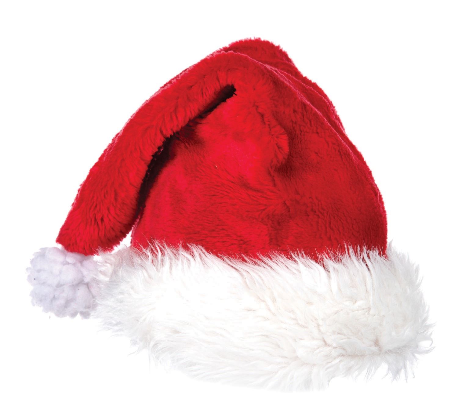 (Walt Disney World) A Walt Disney World Magic Kingdom Christmas Santa Hat. Costume hats like this were worn by Disney Parks Cast Members involved with the presentation of Mickey's Very Merry Christmas Party. Measuring a size "one size fits all," the hat is in very good condition, with wear to the faux fur trim and interior of the hat.