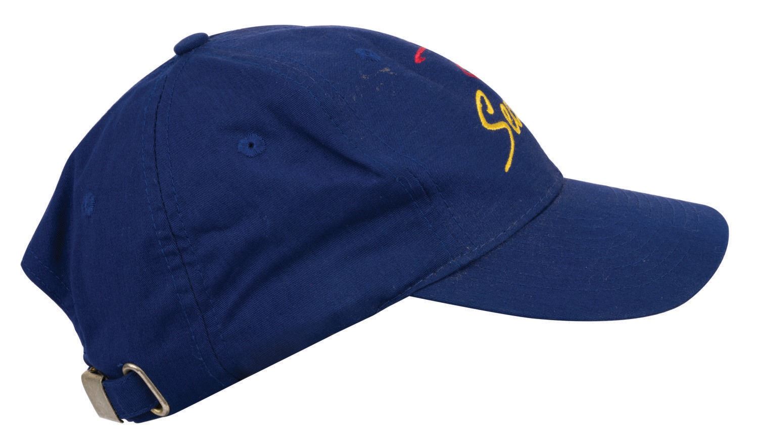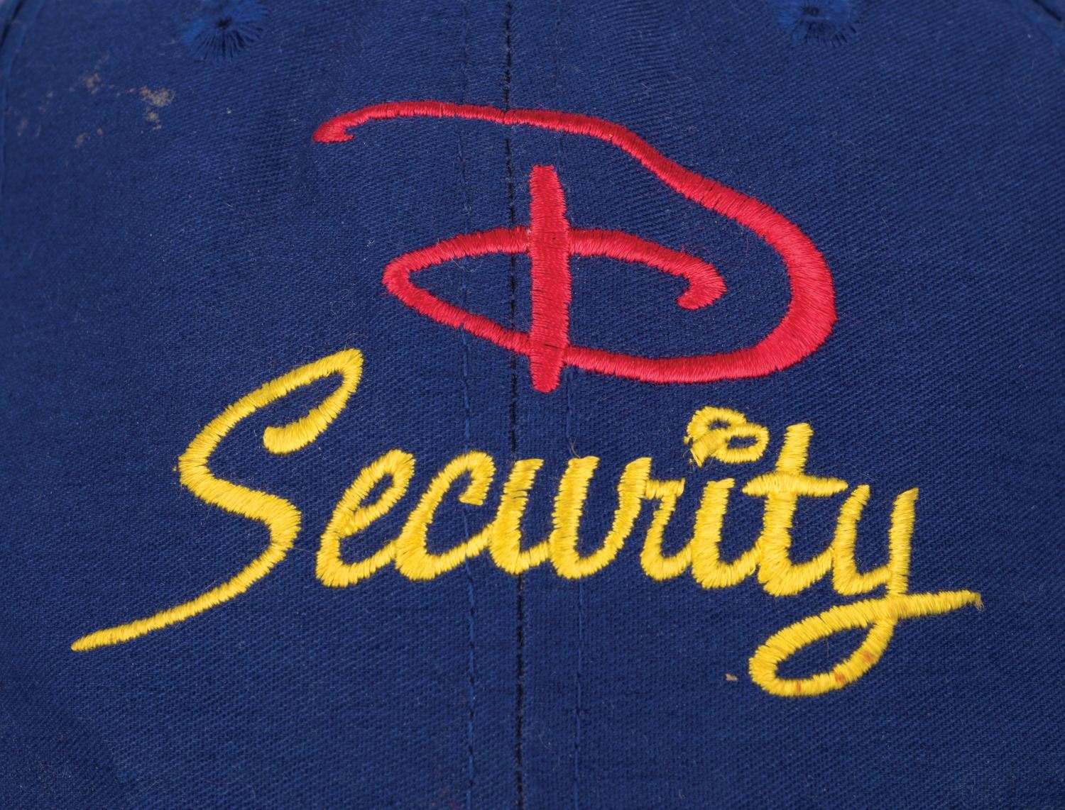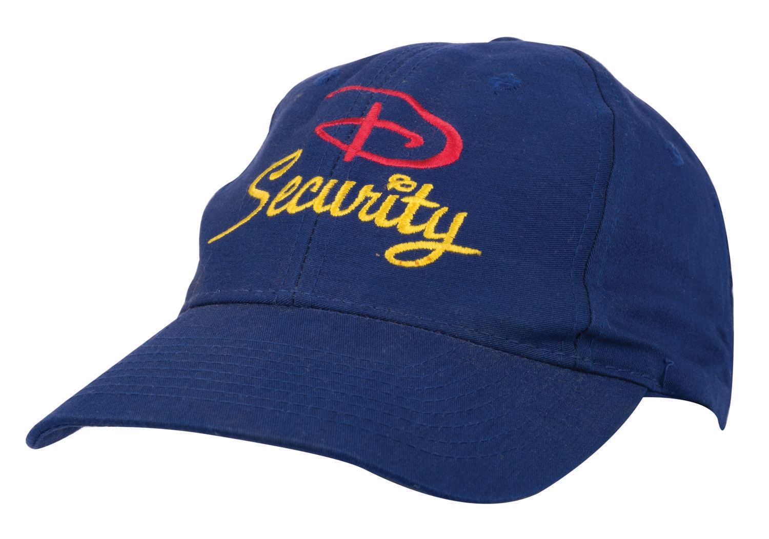 (Walt Disney World, 2000s) A Disney Security cap once worn by Walt Disney World Security Hosts and Hostesses. The adjustable hat measures "one size fits all" and is in very good condition with light stains and minor wear to the crown panels and sweatband.