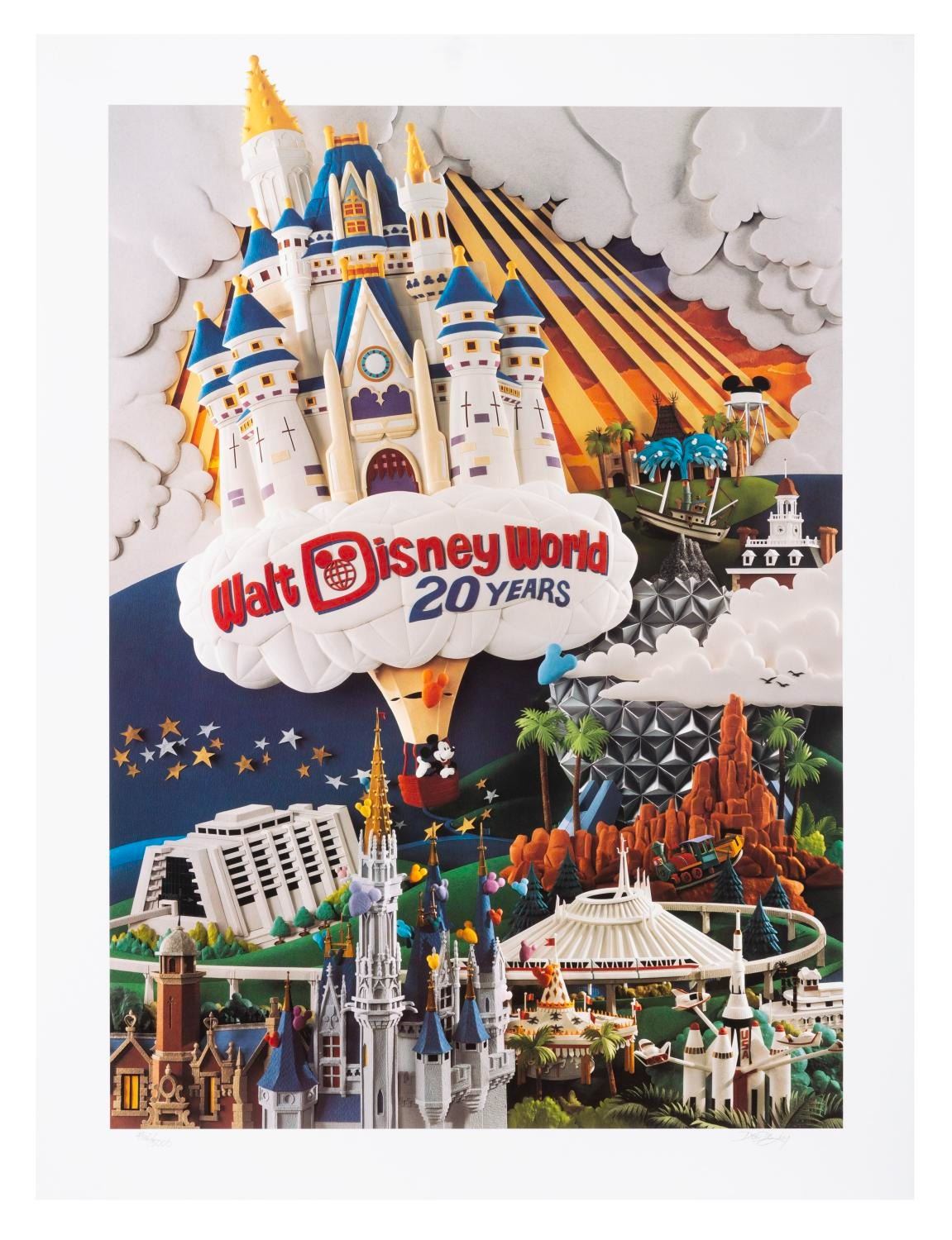 (Walt Disney World, 1991) An incredible print of "Where Dreams Take Flight" signed by artist Dee DeLoy and created for the Walt Disney World 20th Anniversary celebration. Numbered 4962/5000, the 24" x 36" print is in fine condition.
