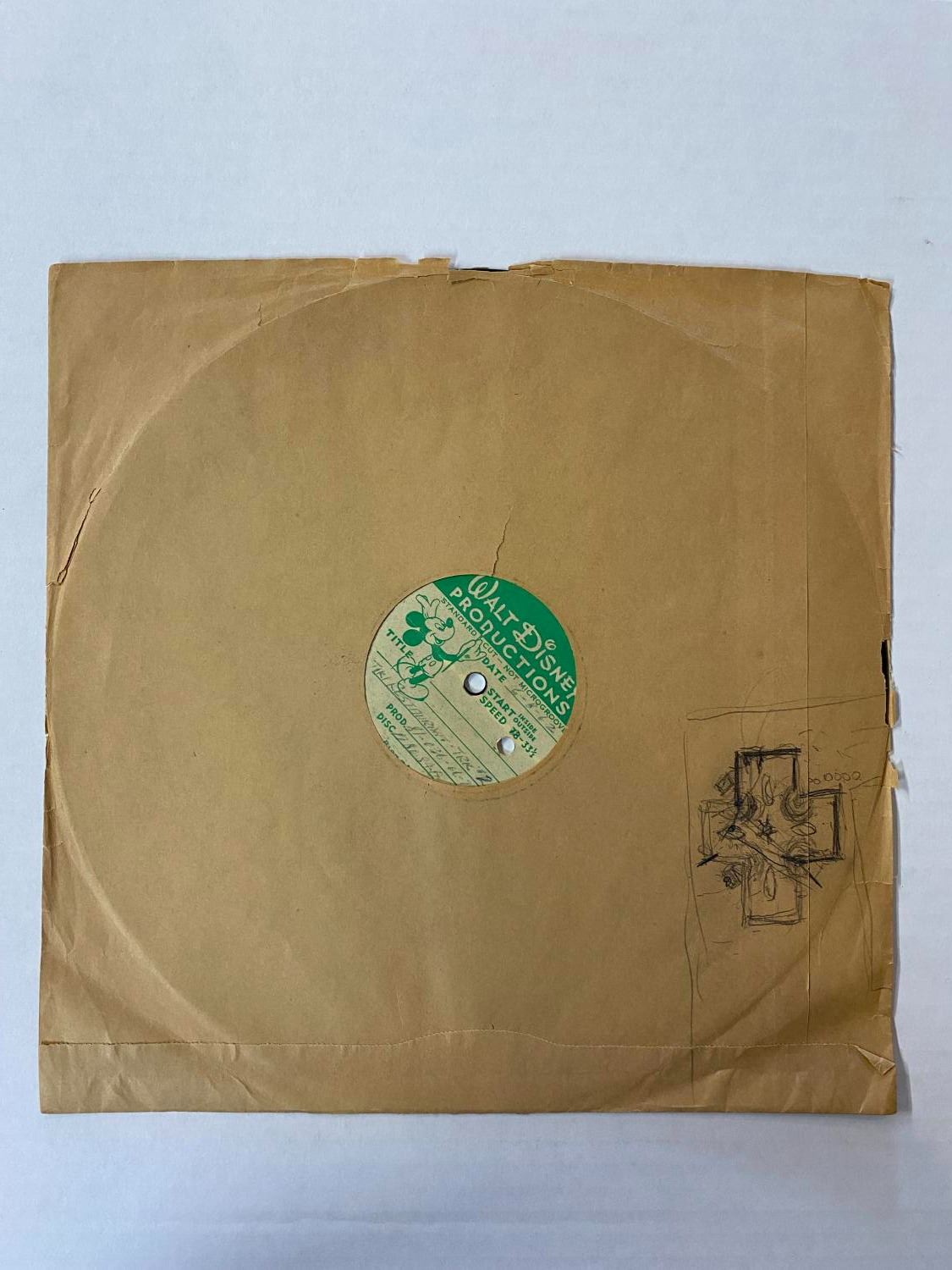 (Disney, 1962) A Walt Disney Productions acetate recording created for Walt Disney's Enchanted Tiki Room. The one-sided recording features the orchestrated music with birdsong. Measuring 12" the 33 1/3 rpm record has some scratches, but tracks are audible.