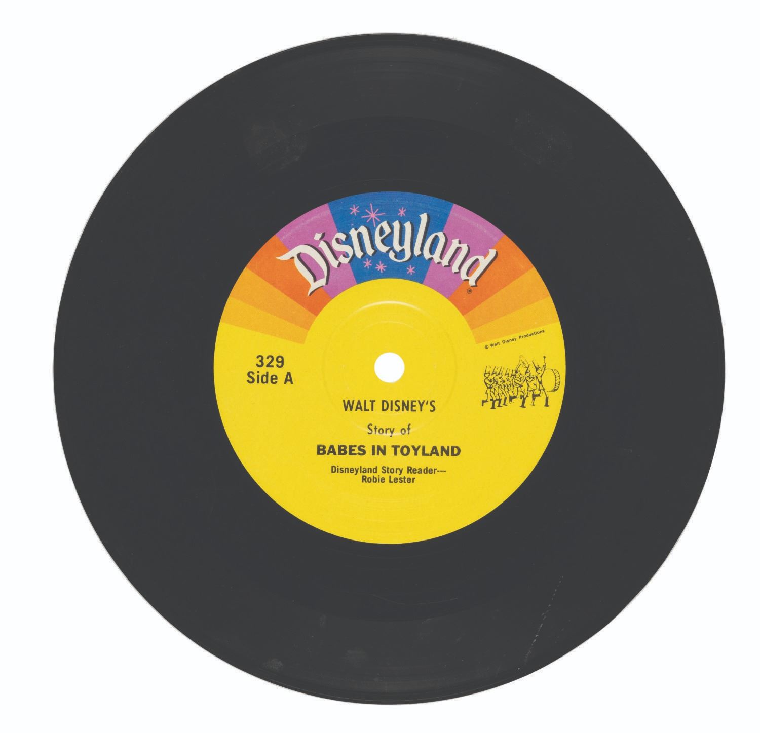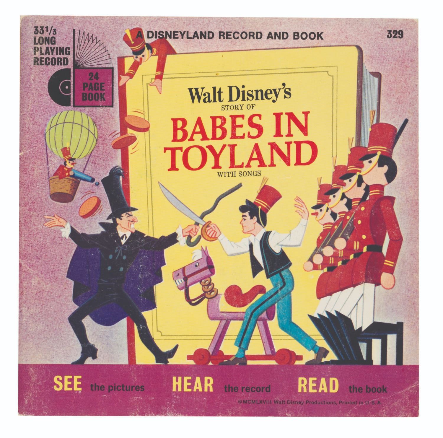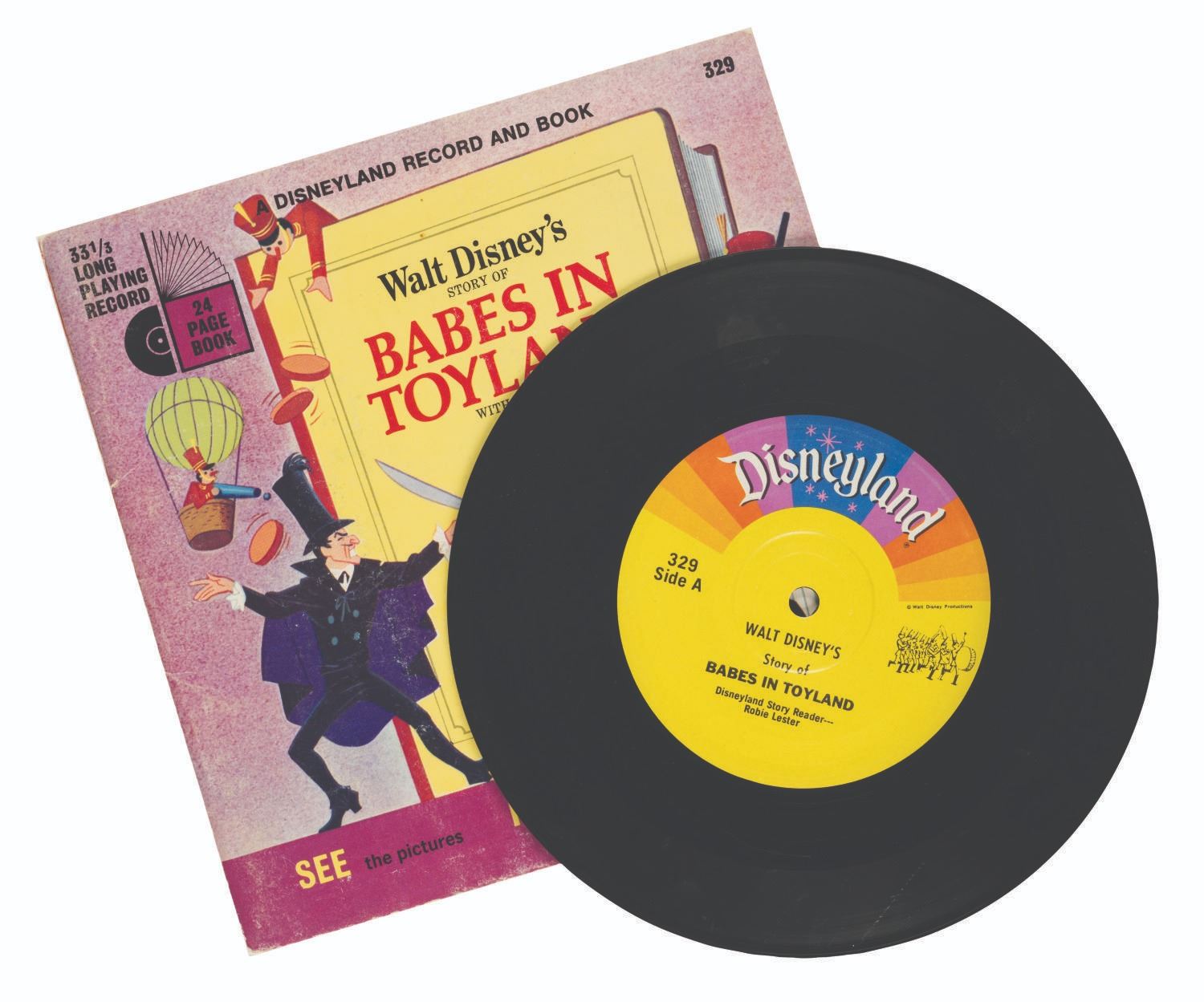 (Disney, 1968) A 33 ⅓ RPM “Babes in Toyland” record with narration by voice actress Robie Lester and a 24-page illustrated booklet of the film’s story. The book and record are in good condition with typical wear overall from use.